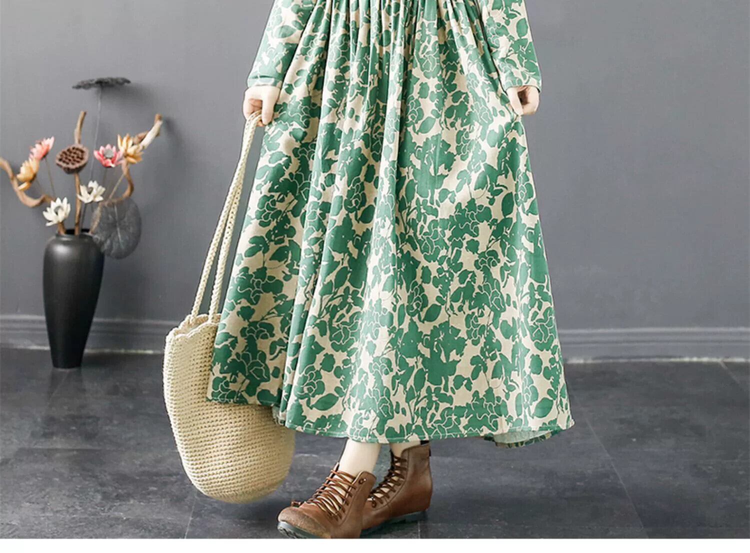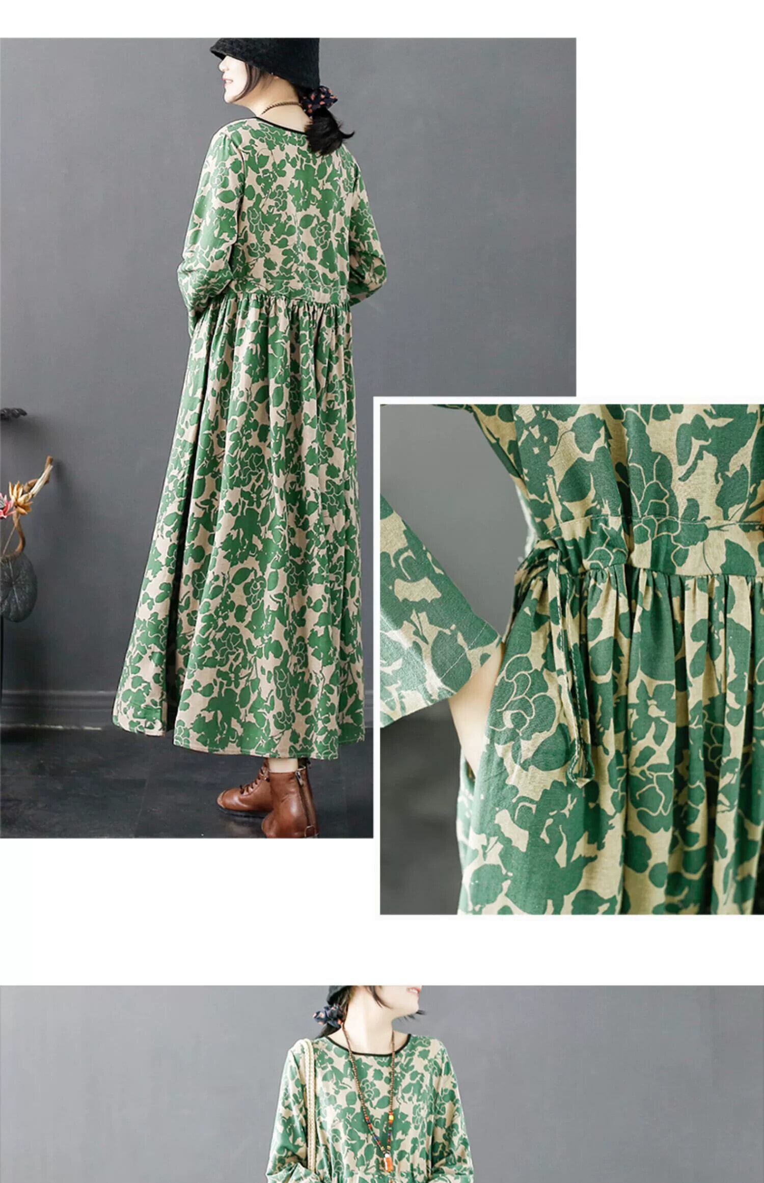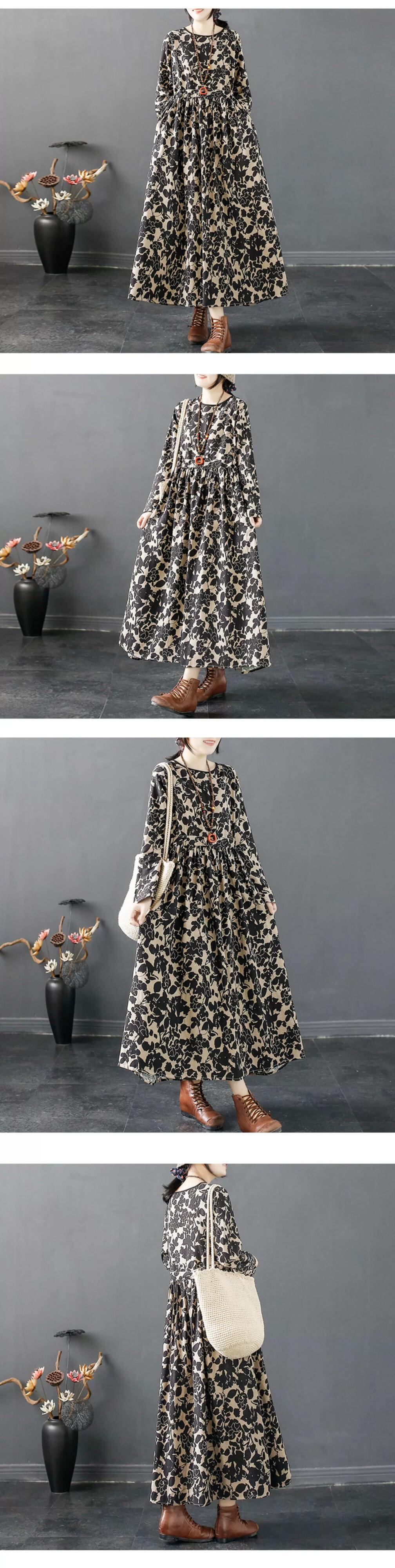 Eign Trade Export 有名ブランドの女性のエスニックスタイル花柄ラミーロングスカートルーズ長袖コットンとリネンのスカート sine98563440340
