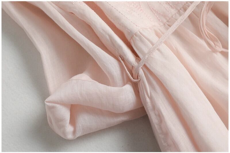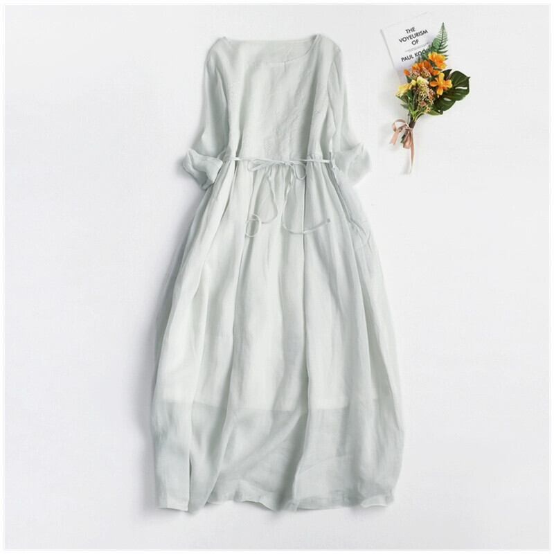 ディスカウントストアショッピングモール撤退女性エストラミー七分袖ドレスルーズ刺繍リネンロングスカート レッド sine97658007974