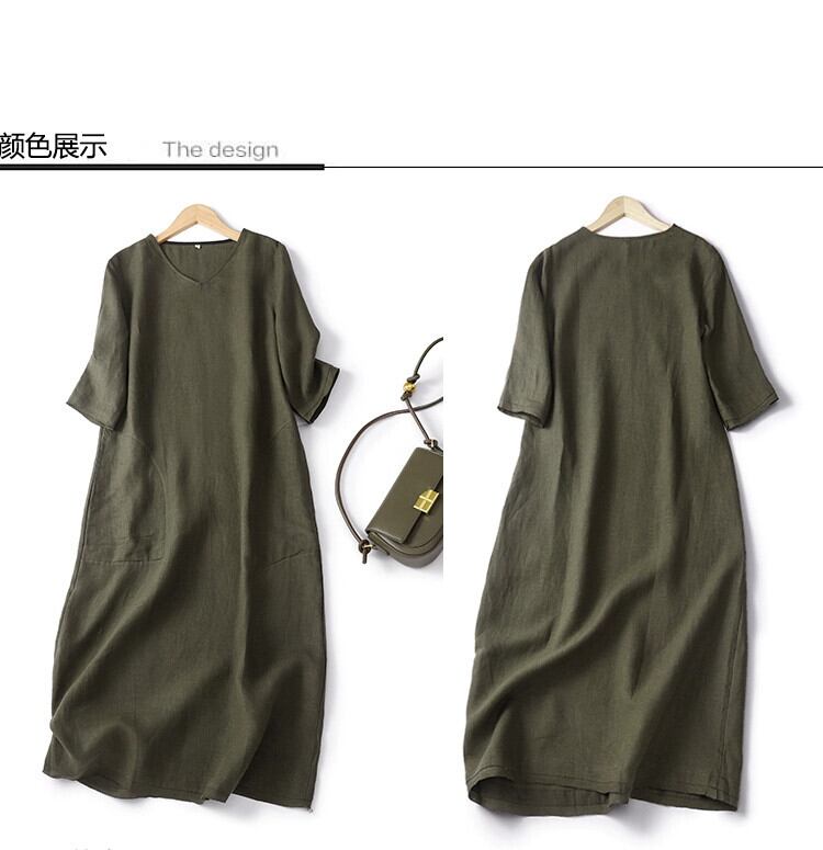 漏れを拾ってください! Vネックでゆったりとした肉感をカバーするレトロなコットンリネンのドレスと、有名ブランドのカウンターを取り除いたエレガントなリネンのロングスカート。 sine78175186163