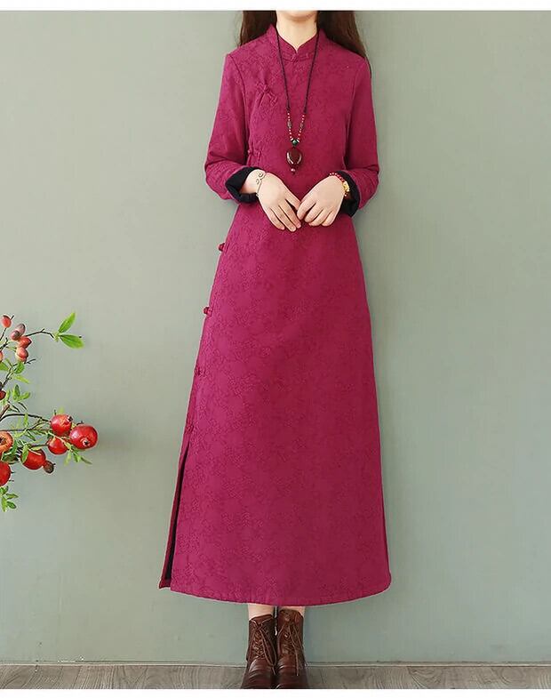 Eign Trade 輸出ブランドテールグッズ女性のレトロ中国ジャカードバックルチャイナロングスカートプラスベルベット肥厚綿とリネンのドレス コットン sine44833261191
