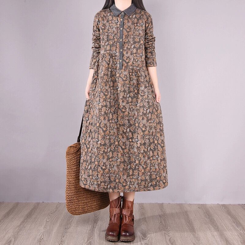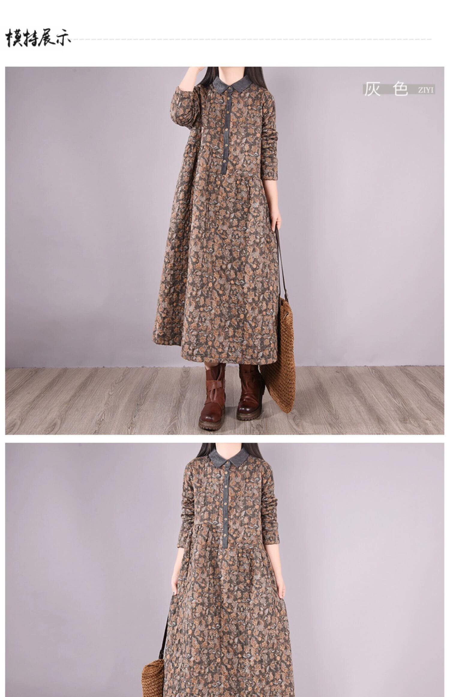 リークされた ese オリジナルシングルコットンとリネンキルティングドレス女性厚くて暖かいミッドレングスレトロ花柄ライトコットンドレス sine56036405665