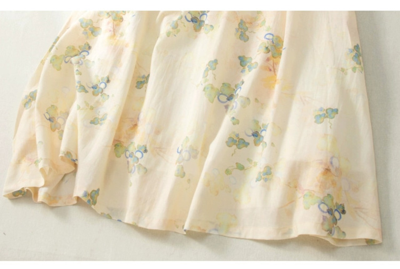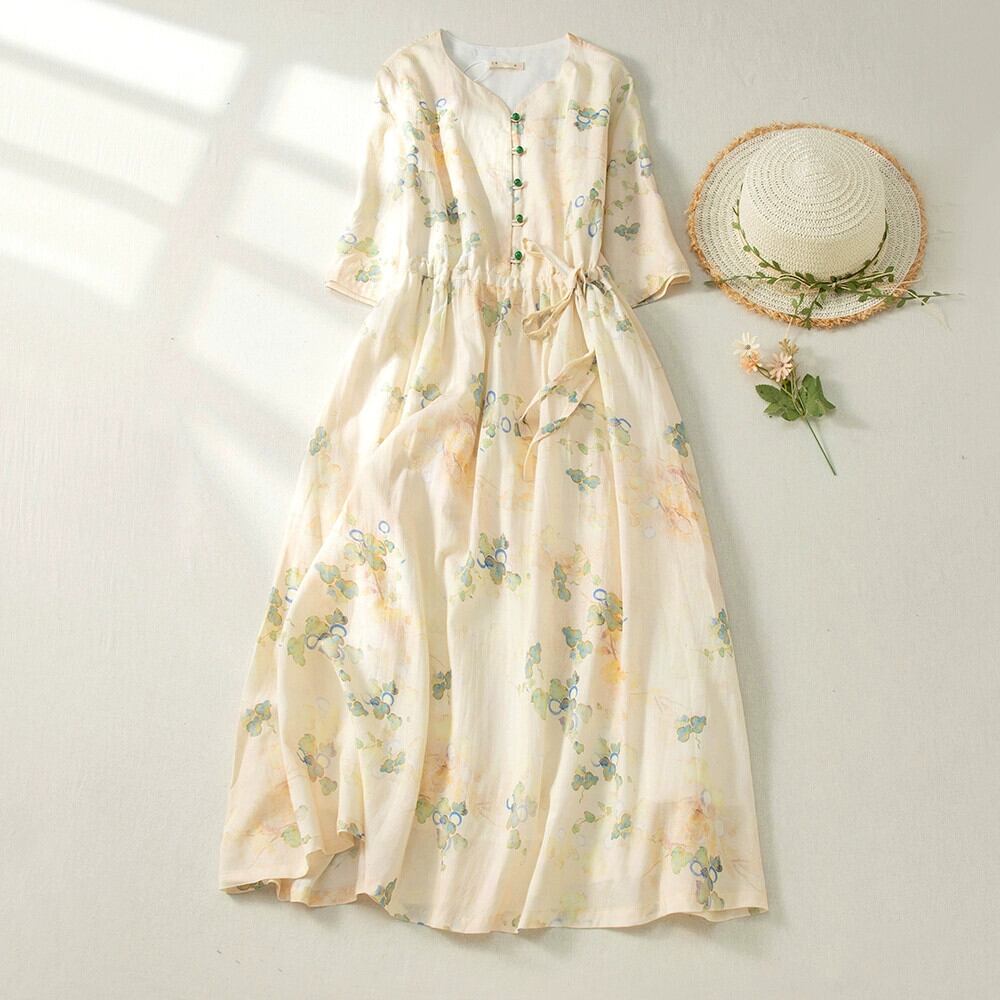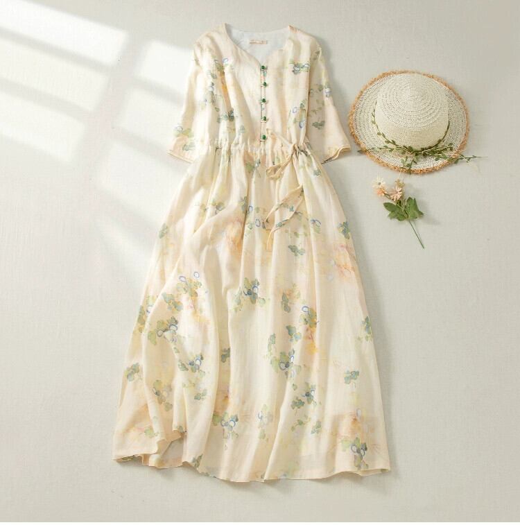 フランスオリジナル eign trade ビッグネーム女性文学芸術ビッグスイングラミードレスルーズウエストプリントコットンとリネン A ラインロングスカート Aライン sine9432798178