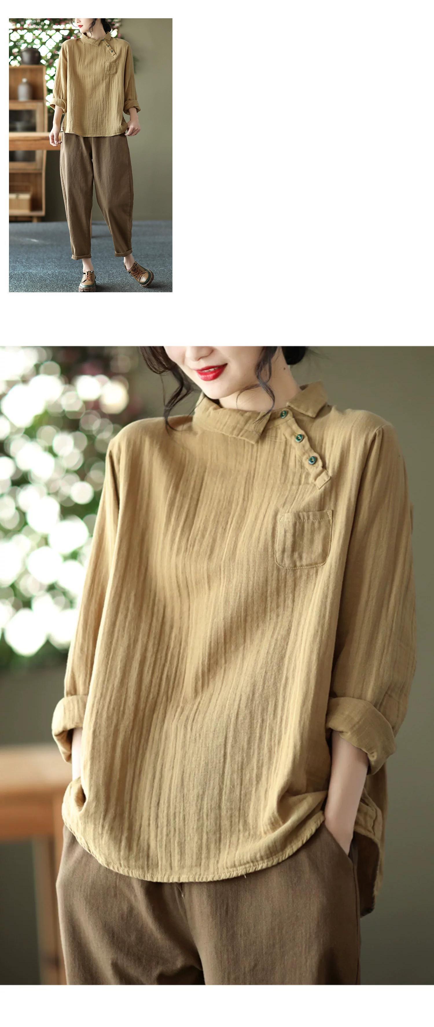 クリアランスクリアランス〜eign trade counterdrawingレディース二重層綿糸ラペルプルオーバートップレトロスラントフロント長袖シャツ ロング コットン sine13754343310