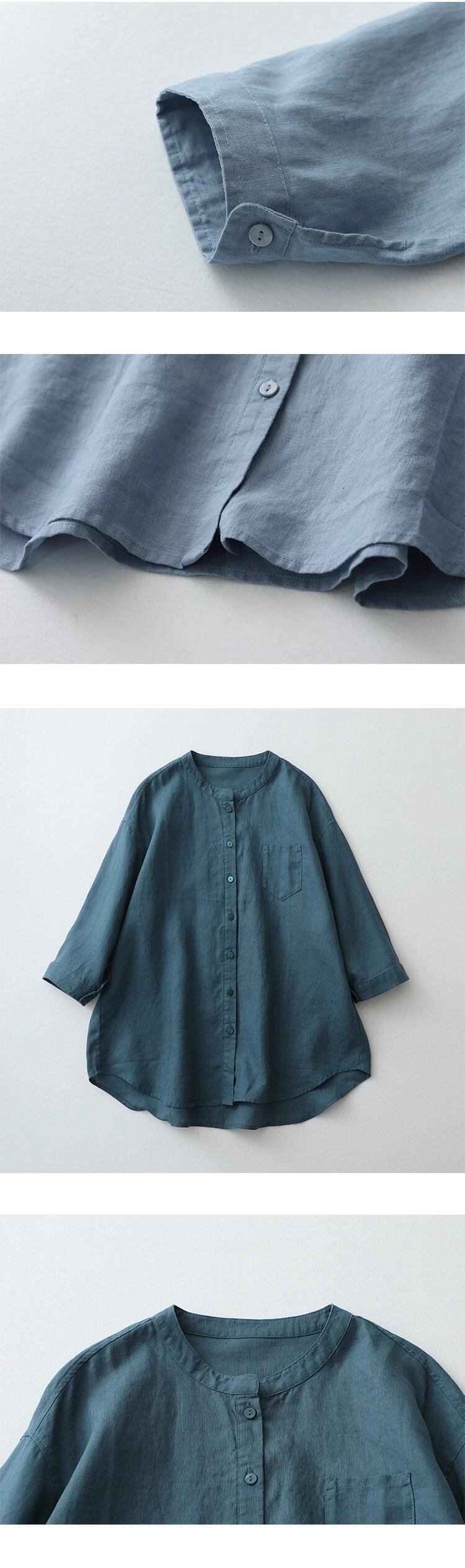 カウンタークリアランスグッズ シンプル 万能 リネン 半袖シャツ レディース ゆったり カジュアル ベビードール トップス sine27833224361