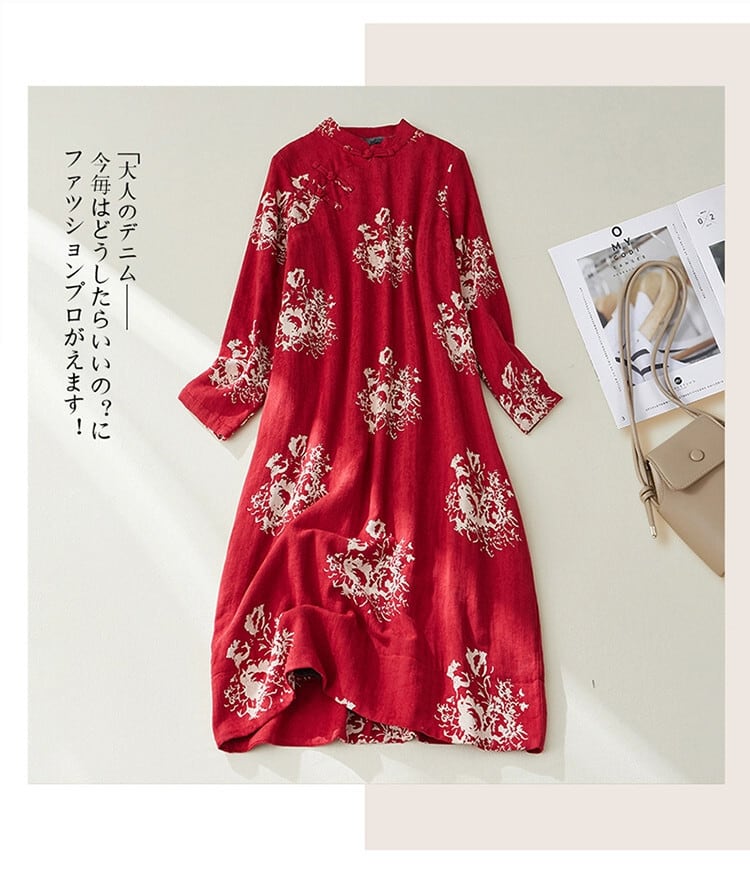 Eign Trade Export Big-name 割引婦人服中国風バックル改良チャイナドレスプラスベルベット厚みのあるプリントコットンとリネンのドレス冬 ウィンター 冬物 sine77778117459