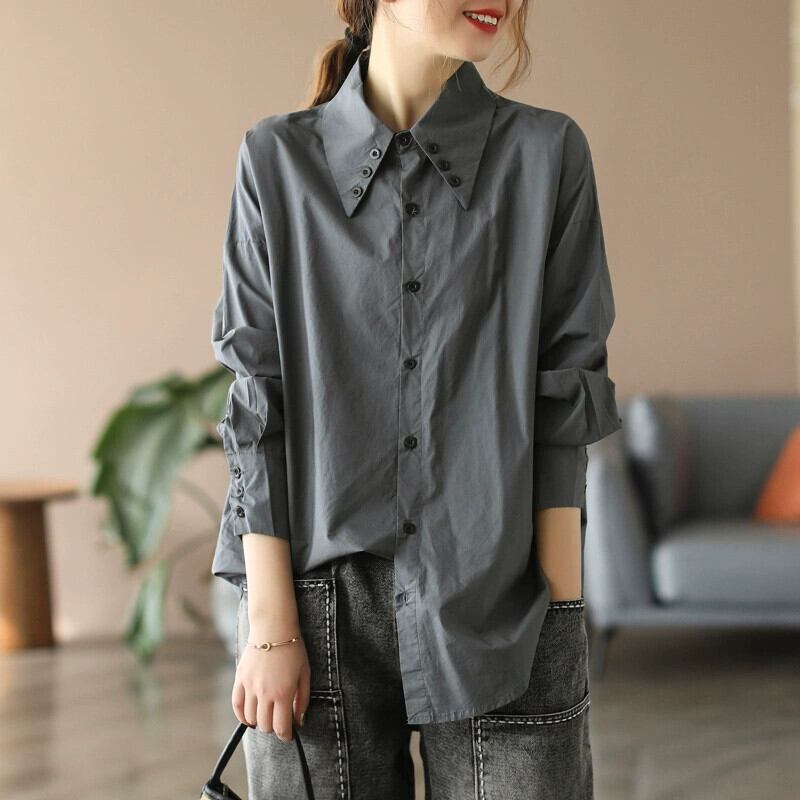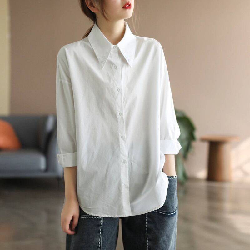 カウンタークリアランスグッズ、シンプルで万能なポイントカラーシャツ、ゆったりスリムなコットンとリネンのレディースシャツトップ sine47040430634