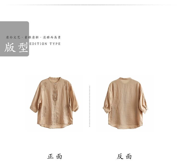 カウンタークリアランスグッズ、芸術的なレトロリネンシャツ、レディースサマールーズカジュアルコットンとリネンの刺繍入りトップス レッド 夏物 sine5805749250