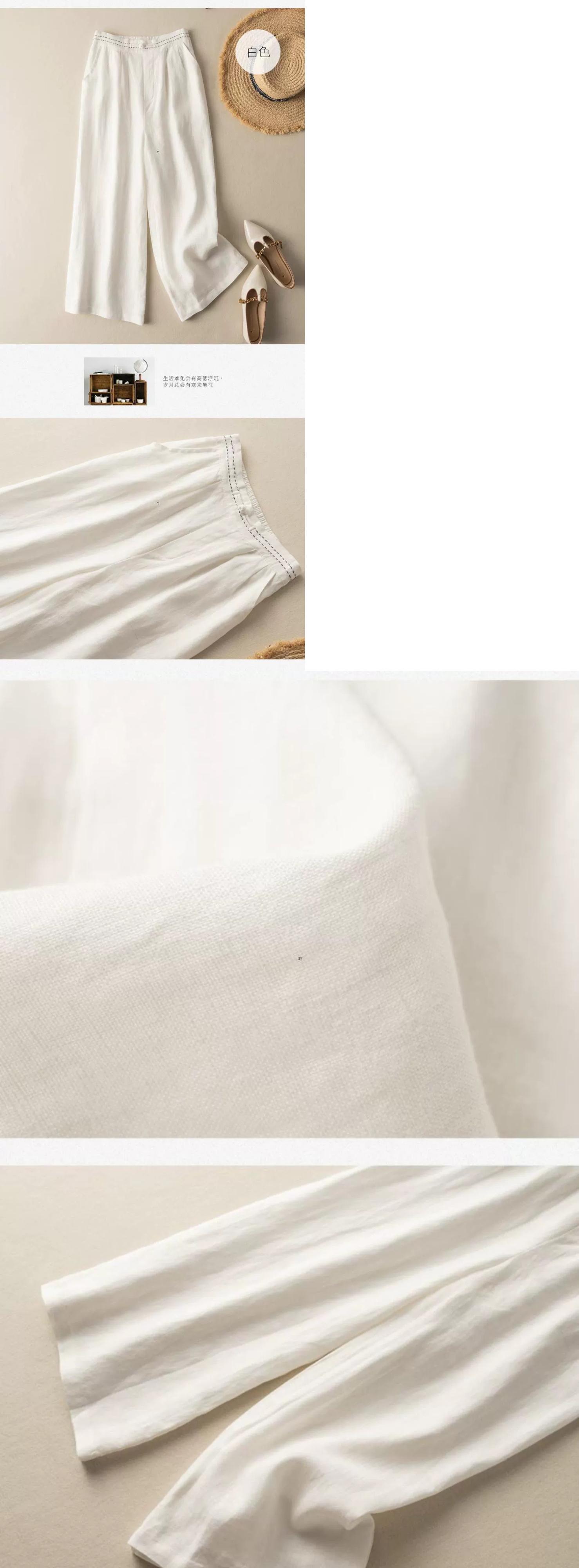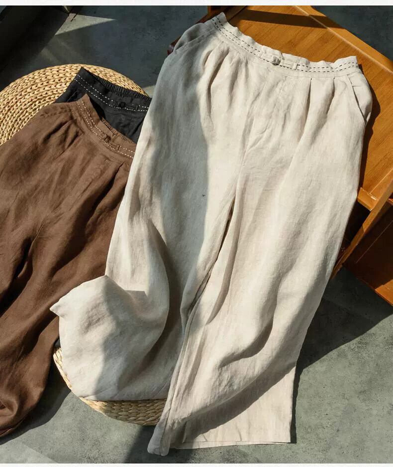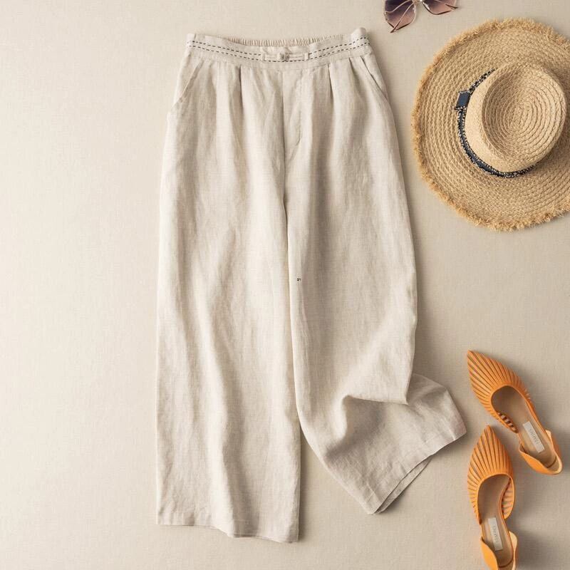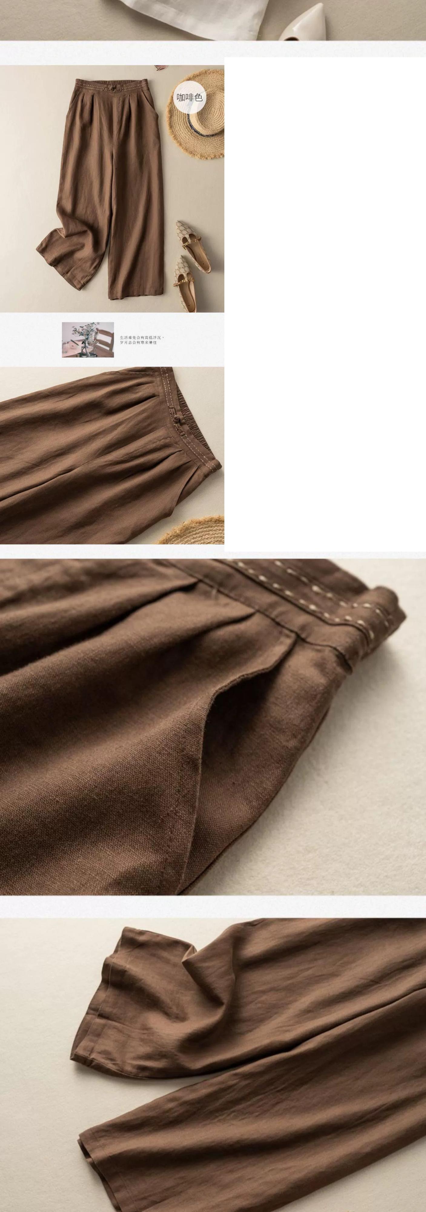 クリアランスリーク〜カウンター最後の在庫レトロコットンとリネンのドレープワイドレッグパンツレディース、ルーズハイウエストストレートレッグリネン9ポイントパンツ sine37842387787