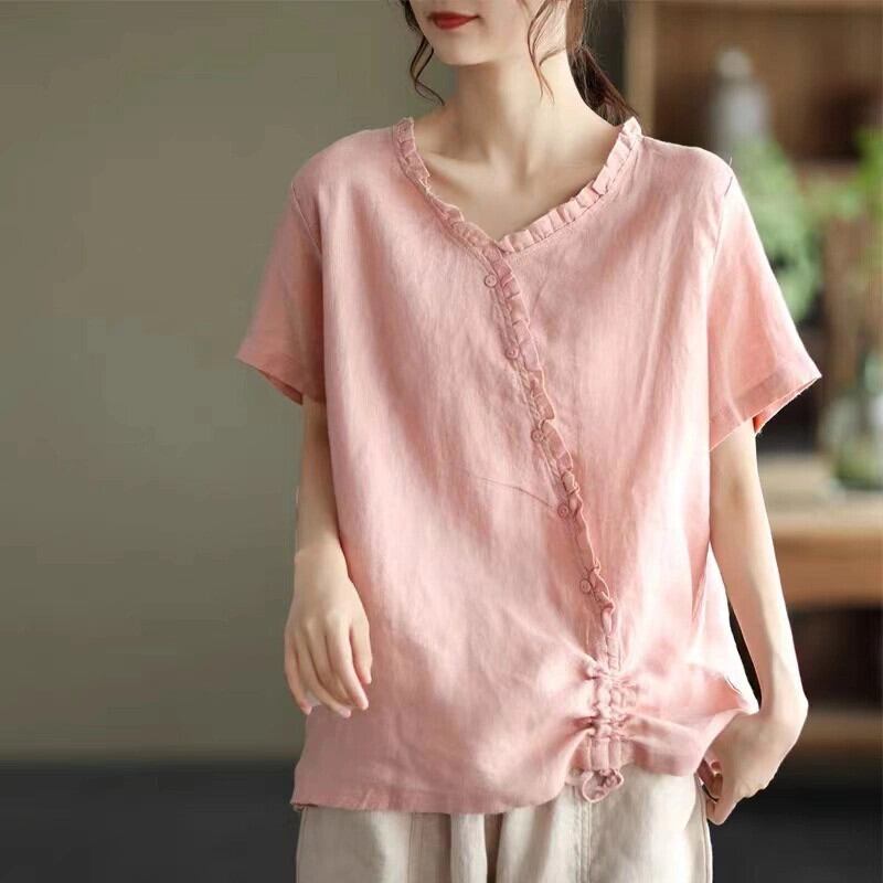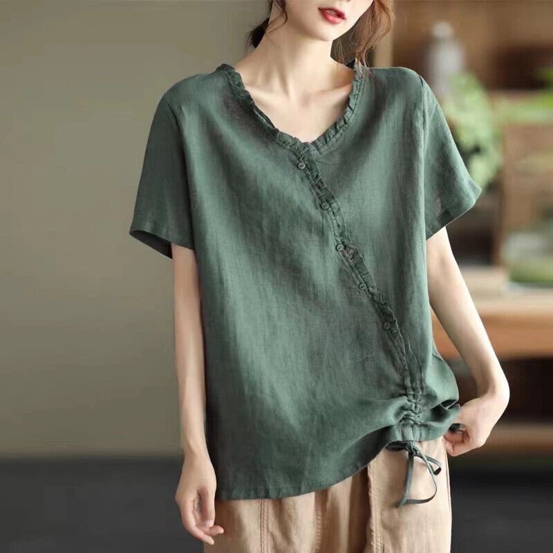 eign trade ese オリジナル シングル ビッグネーム 撤退 レトロ コットンとリネン 半袖 T シャツ レディース ゆったり 軽い カビエッジ リネン トップス Tシャツ sine28438352782