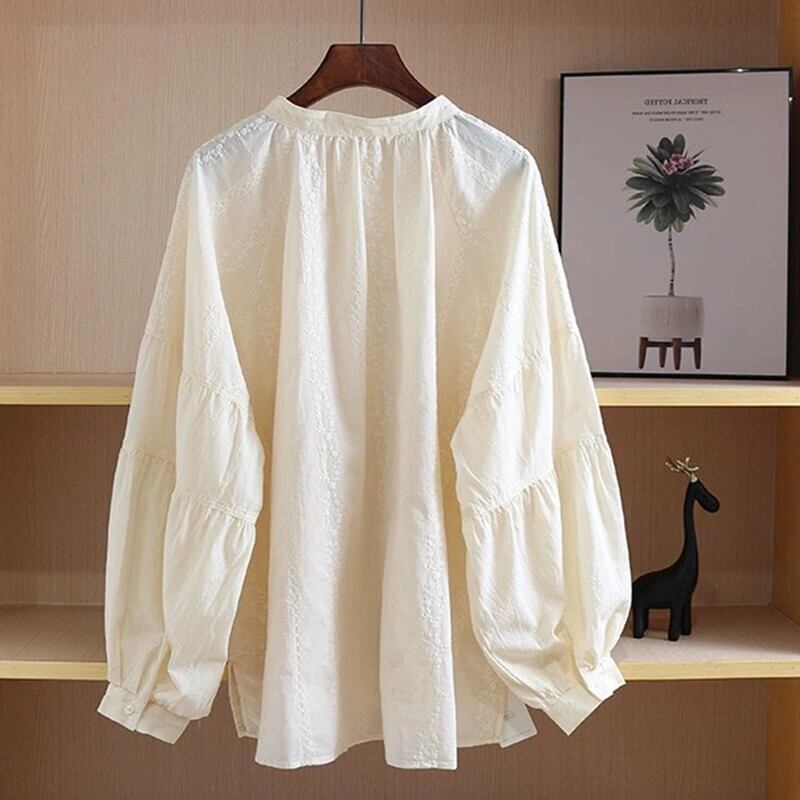 クリアランス リーク ~ カウンターの有名な既製の文学的および芸術的な刺繍入りジャカード長袖シャツ、レディース、ゆったりとしたスタンドカラー長袖トップス ロング レッド sine89188049206