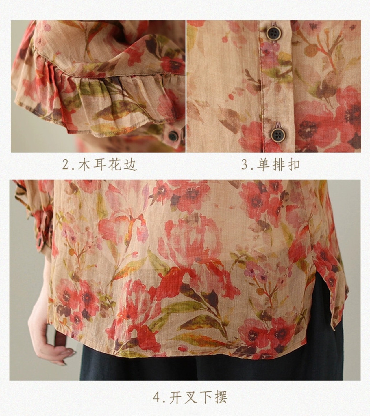 eign trade ese オリジナルハイエンドブランドプリント綿とリネンのランタンスリーブシャツ女性のゆったりとした気質のリネン長袖トップ ロング コットン sine20518962438