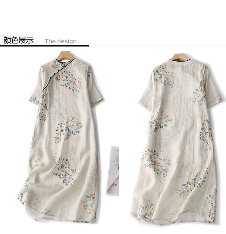 クリアランスカウンター、大手ブランドのテールグッズ、中国風のラミーチャイナロングスカート、ゆったりとしたプリントのコットンとリネンのドレスの女性 sine92322617414