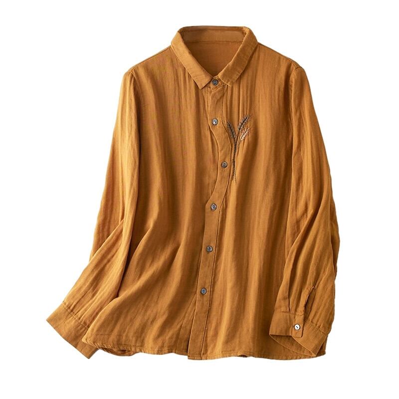 eign trade ese オリジナルハイエンドブランド二層綿糸長袖シャツ女性のルーズカジュアル刺繍シングルブレストトップ ロング レッド コットン sine92815446085