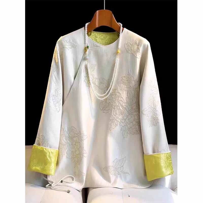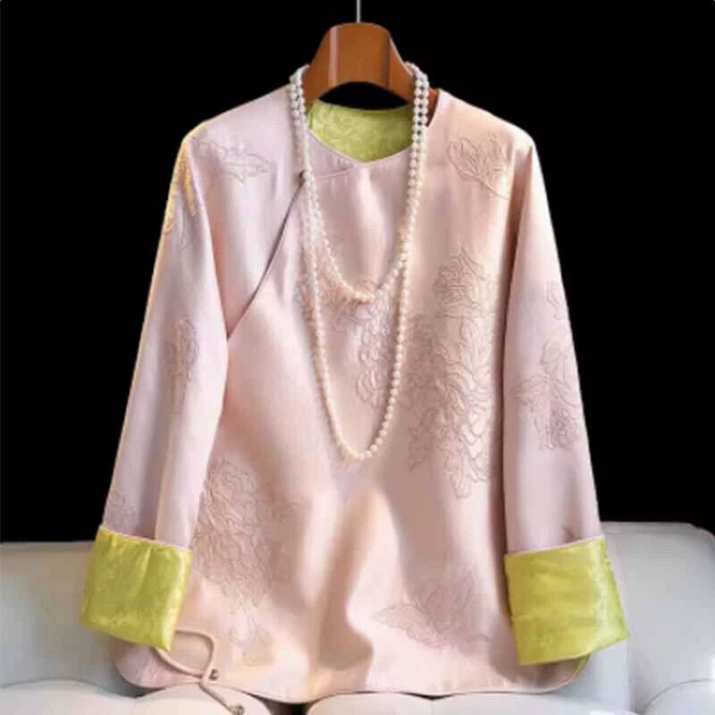 中国風の女性の国民風刺繍シャツ春と秋のスタイルの緩いレトロな気質が改善された唐スーツラウンドネックプレートボタントップ レッド スプリング 春物 オータム 秋物 Oネック sine61678303036