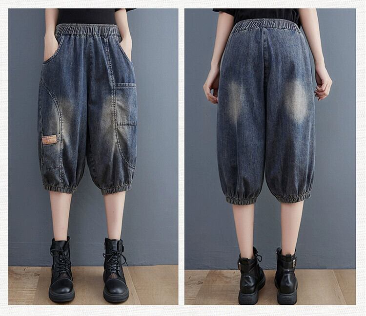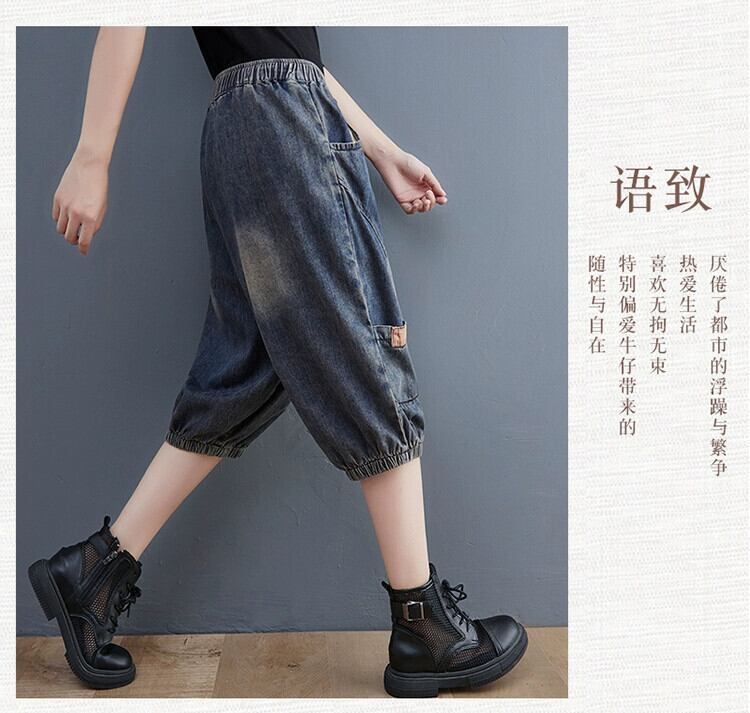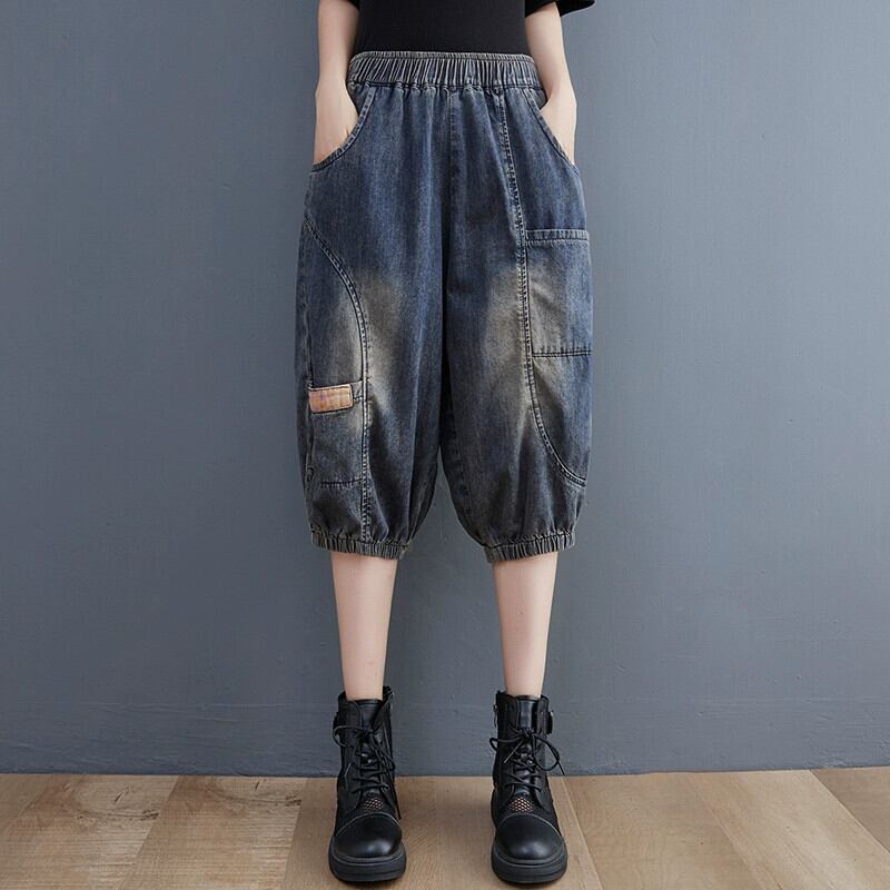 ファットシスターデニムハーレムパンツレディース 2021 夏服ゆったり大きいサイズパーソナライズされたダメージミディアムパンツ七分ブルマ 大きめサイズ サマー 夏物 ショーツ ブルマー sine40934460226