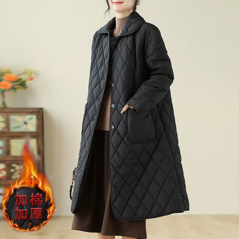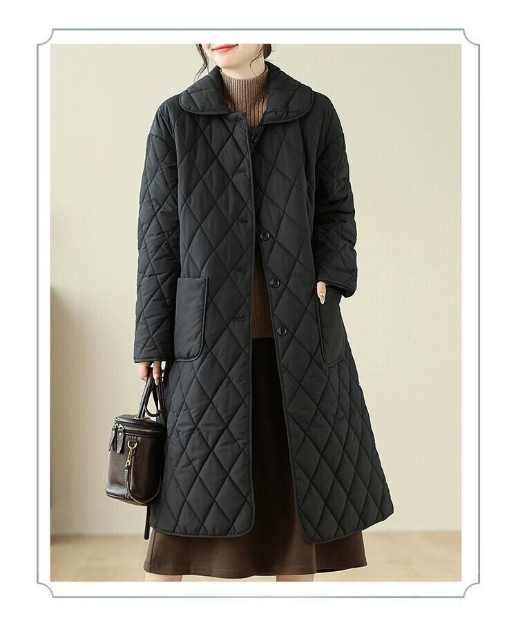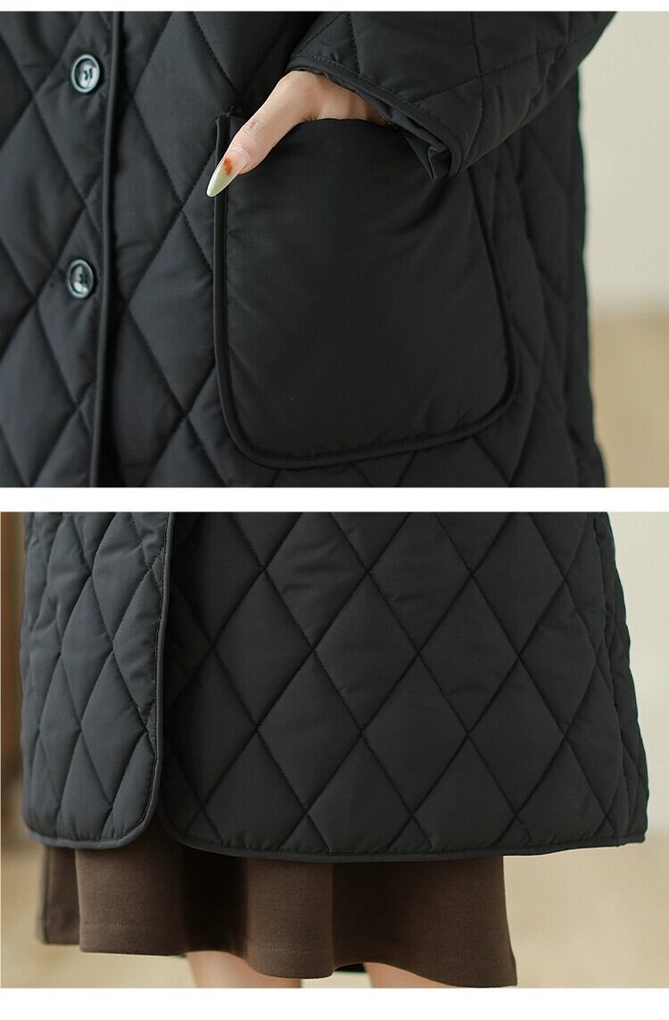 eign trade ese オリジナルビッグブランド撤退菱形ミッドレングスコットンコート女性の緩くて軽いキルティングコットンコート sine60008259033