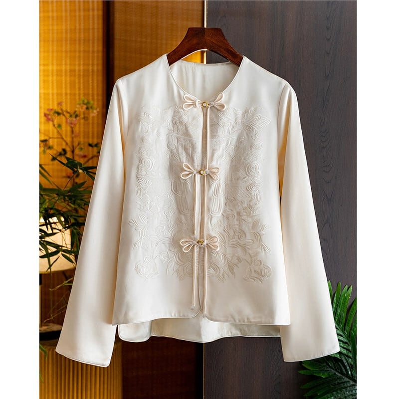 中国風のプレートボタン電話長袖シャツ女性の春の気質ハイエンド国民風重工業刺繍唐スーツショートジャケット ロング レッド スプリング 春物 sine2825461996