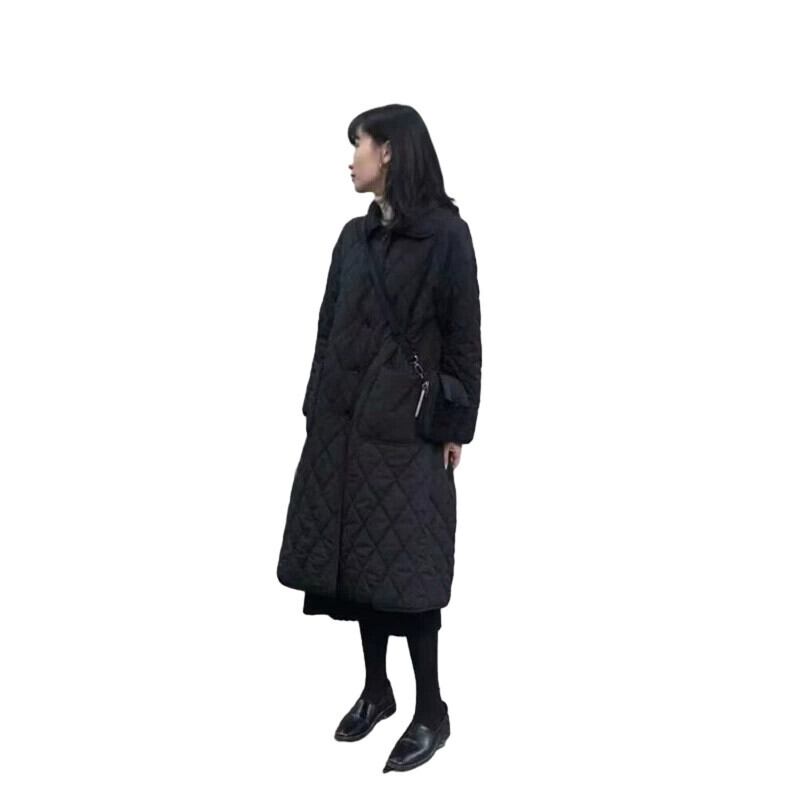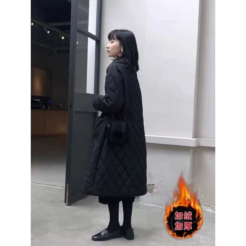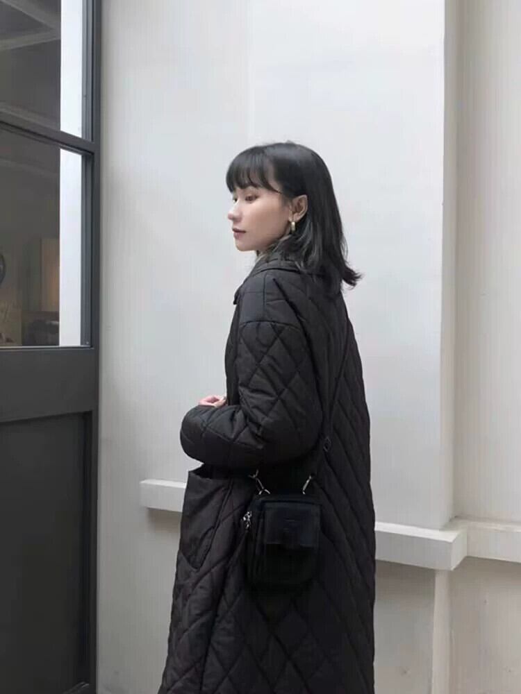 eign trade 輸出ブランド尾品黒薄いダウン綿ジャケット女性キルティング肥厚ミッドレングス綿ジャケット ブラック コットン sine30179896046