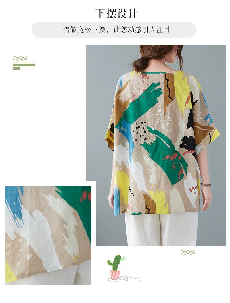 バットシャツ半袖 Tシャツ女性の夏 2021 新しいルーズ脂肪女性年齢削減プリントプラスサイズの女性のトップス 大きめサイズ サマー 夏物 sine94333115452