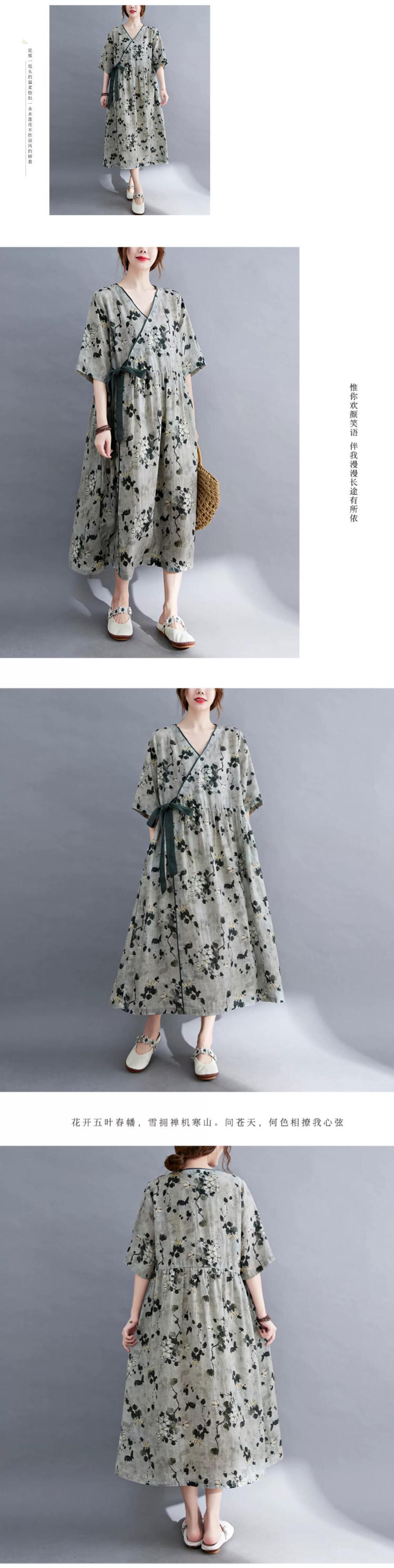 コットンとリネンのドレスの女性の 2021 夏の新作ゆったり大きいサイズスタイリッシュなレースアップウエスト斜め前立て花柄ラミーミドル丈スカート 大きめサイズ サマー 夏物 sine46479774342