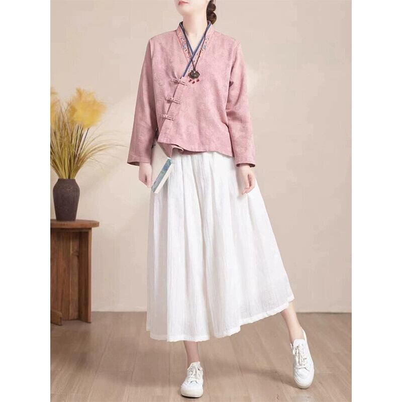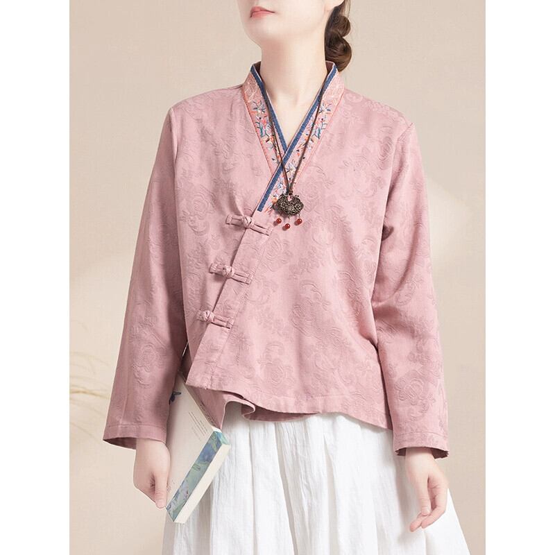 中国風の斜めの前立てボタン付き綿とリネンのシャツの女性の春と秋の緩い国民風の刺繍改善された漢服リネンカーディガントップ コットン スプリング 春物 オータム 秋物 sine28038980655