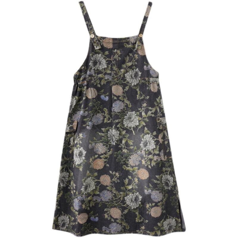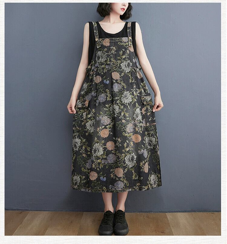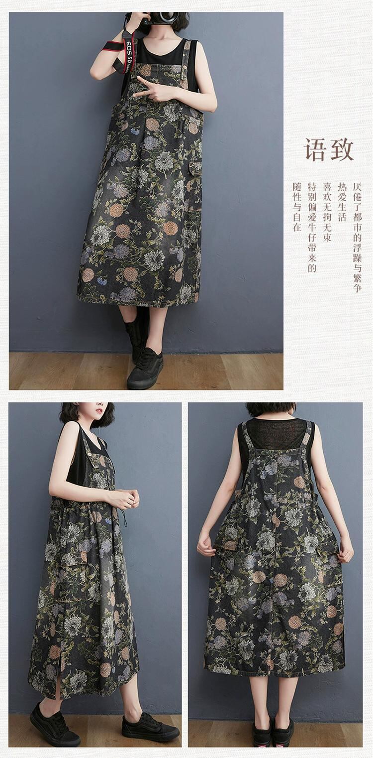 レトロなエスニックスタイルのデニムサスペンダースカート夏ルーズウエスタンスタイルプリント年齢を減らすお腹の脂肪mmプラスサイズのドレス 大きめサイズ サマー 夏物 sine52403516327