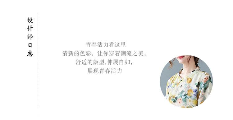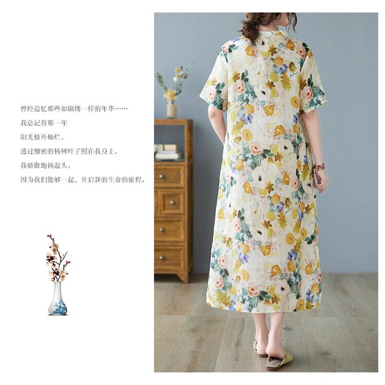 2021 新しい夏の綿とリネンのドレスルーズレトロ文学プリントスタンドカラー改良されたチャイナドレスリネンミドル丈スカート コットン サマー 夏物 sine30709588074