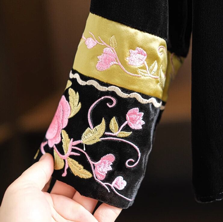 ビッグブランドテール商品のクリアランスカウンター除去中国風刺繍ベルベットボトムシャツ女性ルーズカジュアルラウンドネック Tシャツトップ レッド Oネック sine56678243338