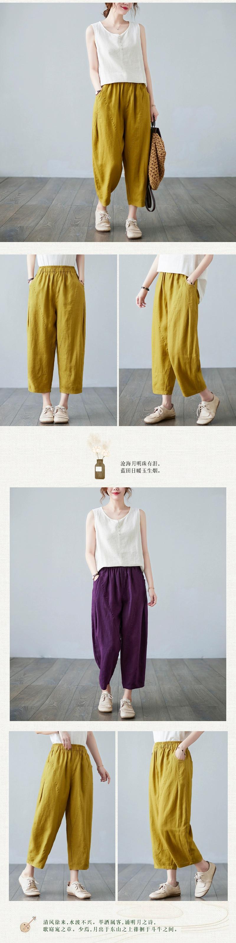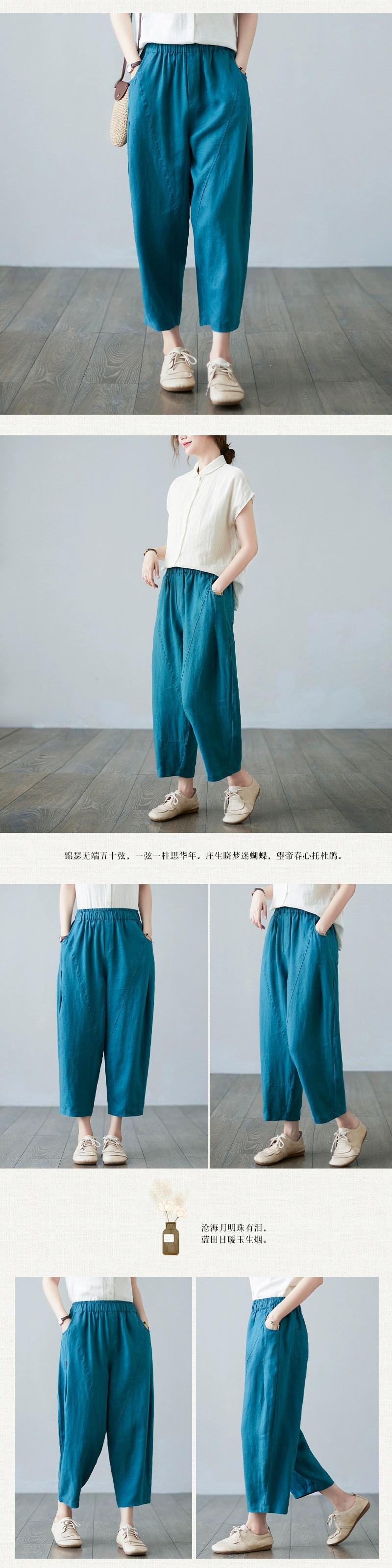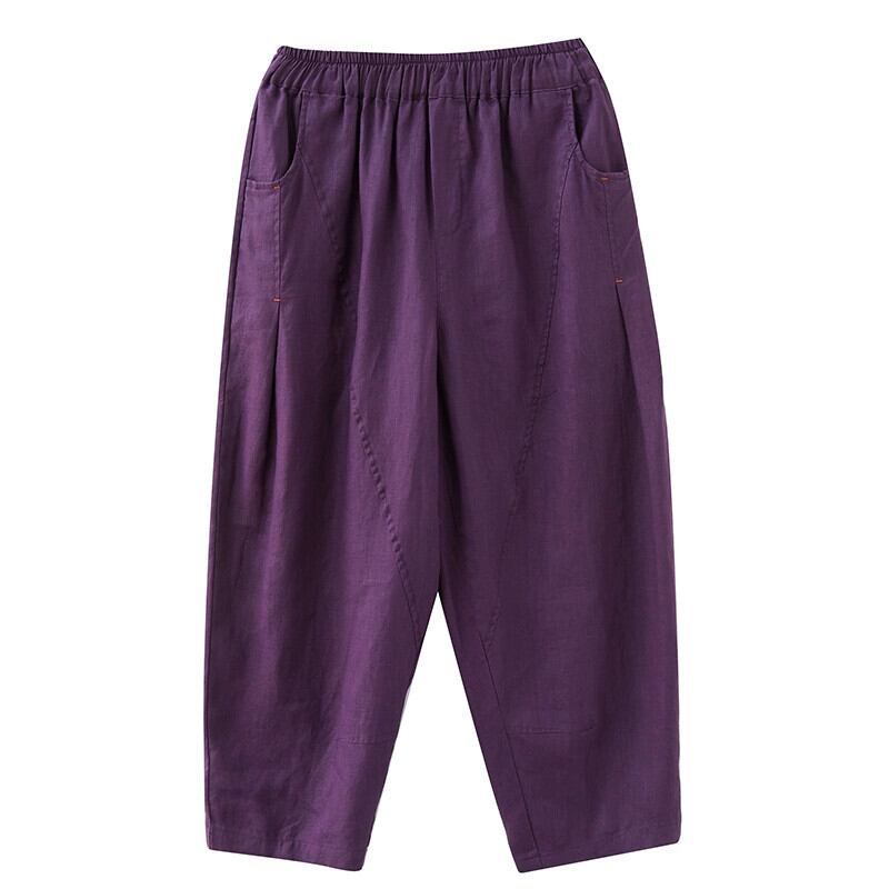 コットンとリネンのキャロットパンツの女性の夏 2021 緩い大きいサイズの弾性ウエストスプライシング無地カジュアルリネン 9 点ハーレムパンツ エラスティック 伸縮 大きめサイズ サマー 夏物 ソリッドカラー sine81231720069