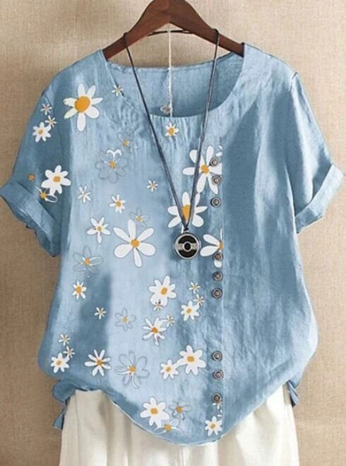 プラスサイズの女性の 2021 夏ルーズ年齢軽減刺繍フラワーシャツ Tシャツトップカジュアルコットンとリネン半袖シャツ レッド 大きめサイズ サマー 夏物 フラワーデザイン sine6494214359