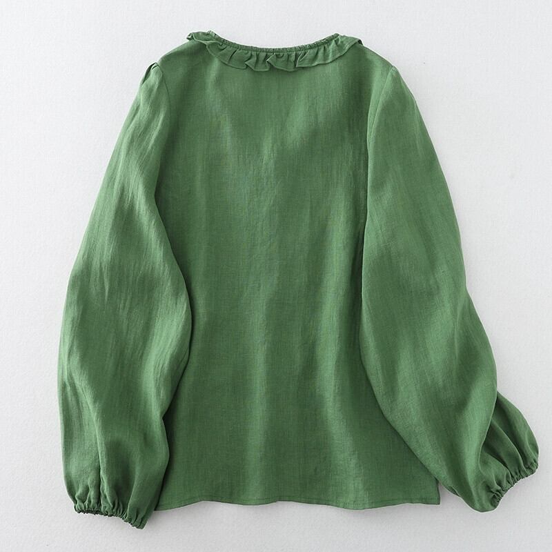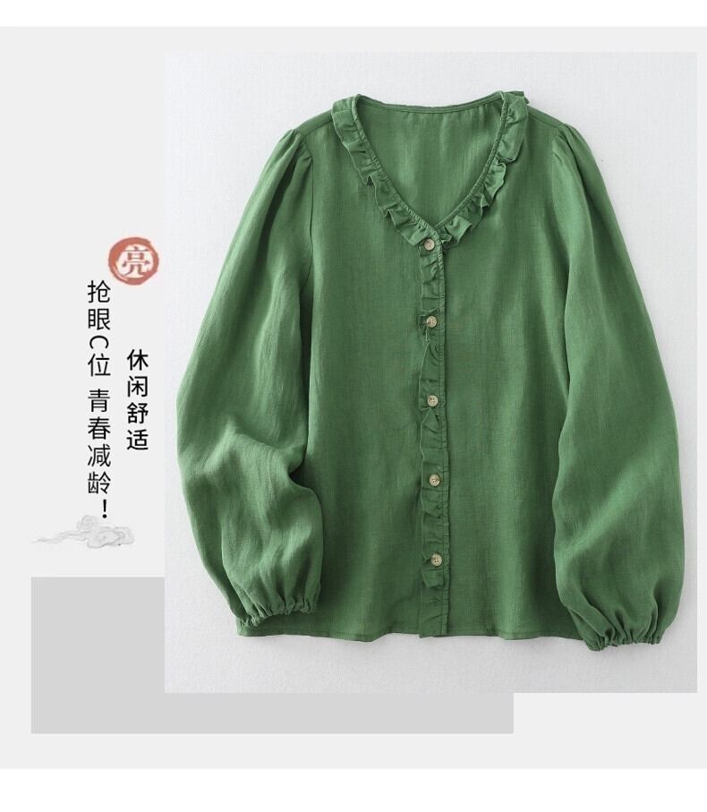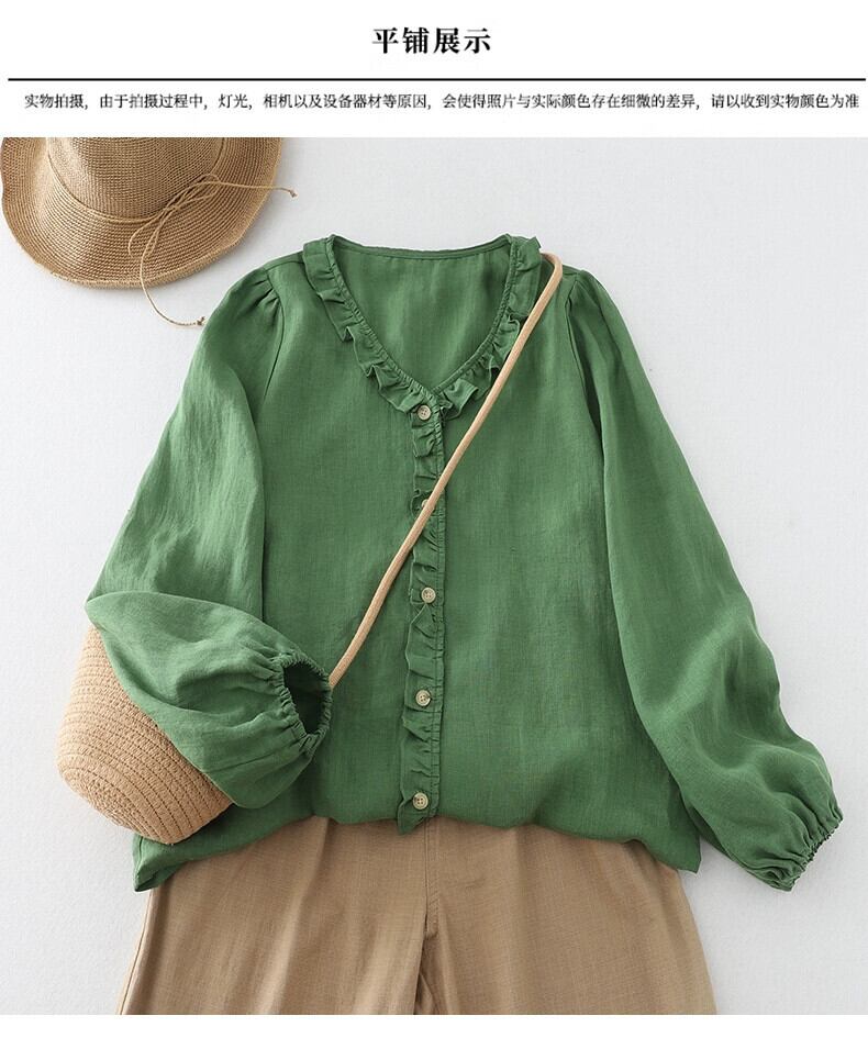 春と秋のエサ菌レース綿とリネン長袖シャツ女性ルーズでスリムなデザインのニッチリネンシャツトップ ロング コットン スプリング 春物 オータム 秋物 sine69654762713