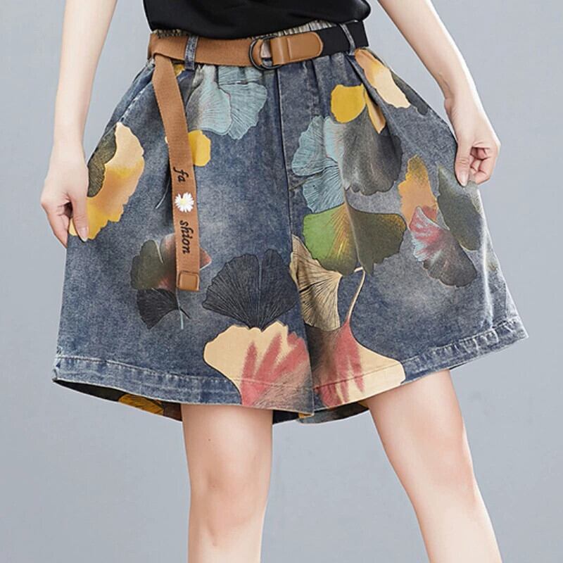 ファットシスタープラスサイズの女性の 2021 夏の新しいルーズプリント老化パンツワイドレッグカジュアルデニム A ラインショートパンツ 大きめサイズ サマー 夏物 ショーツ ブルマー Aライン sine16963270549