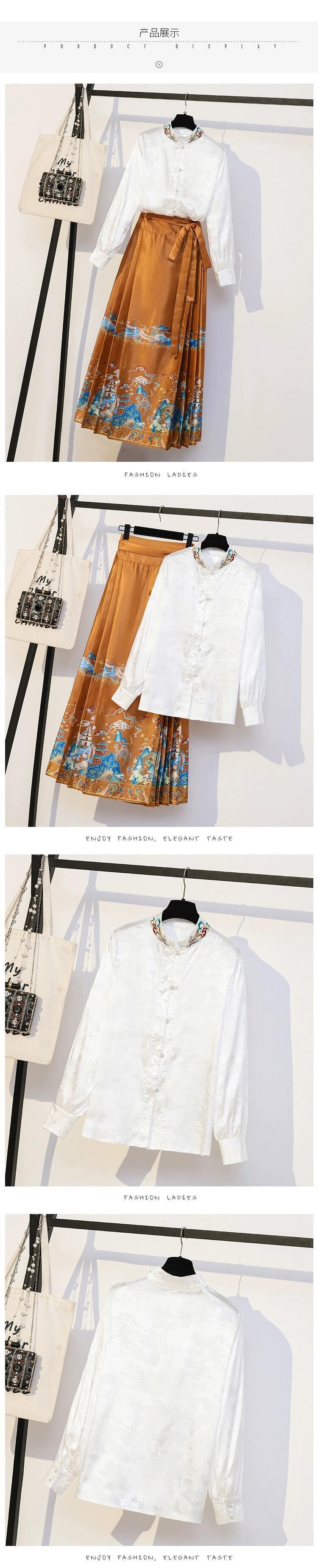 中国風改良韓服白シャツ女性中国風の日常着漢要素プリント馬の顔スカートツーピーススーツ ホワイト sine23212108078