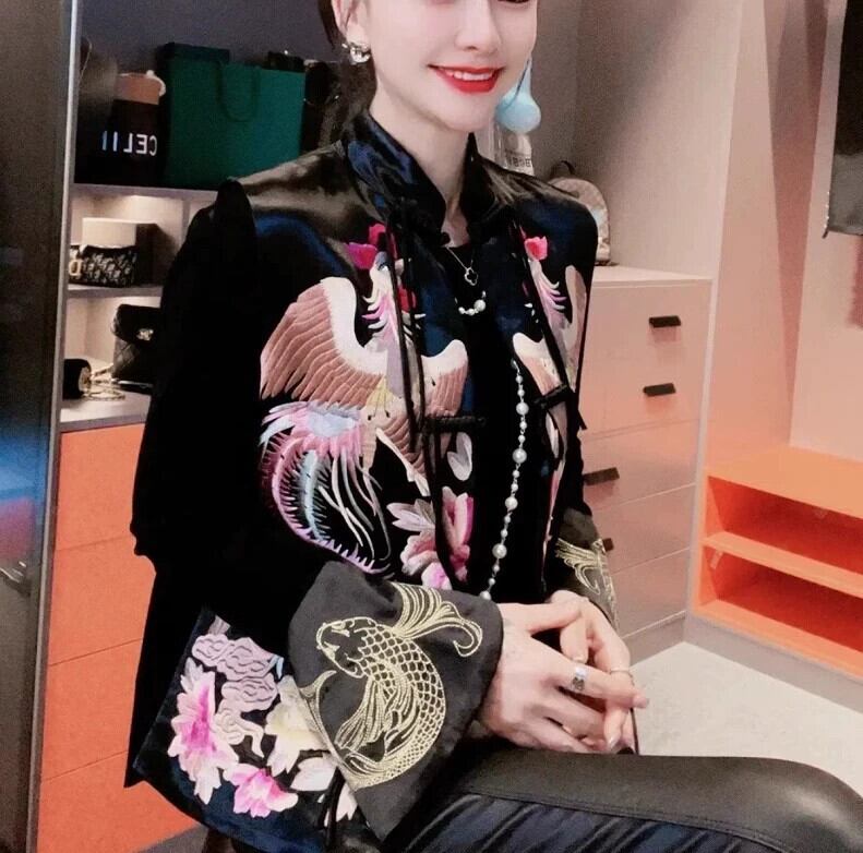 中国風フェニックス着用牡丹刺繍ベストジャケット女性春と秋スタイル国民的ファッションスタイル重工業刺繍ディスクバックルベストジャケット レッド スプリング 春物 オータム 秋物 sine47062733736