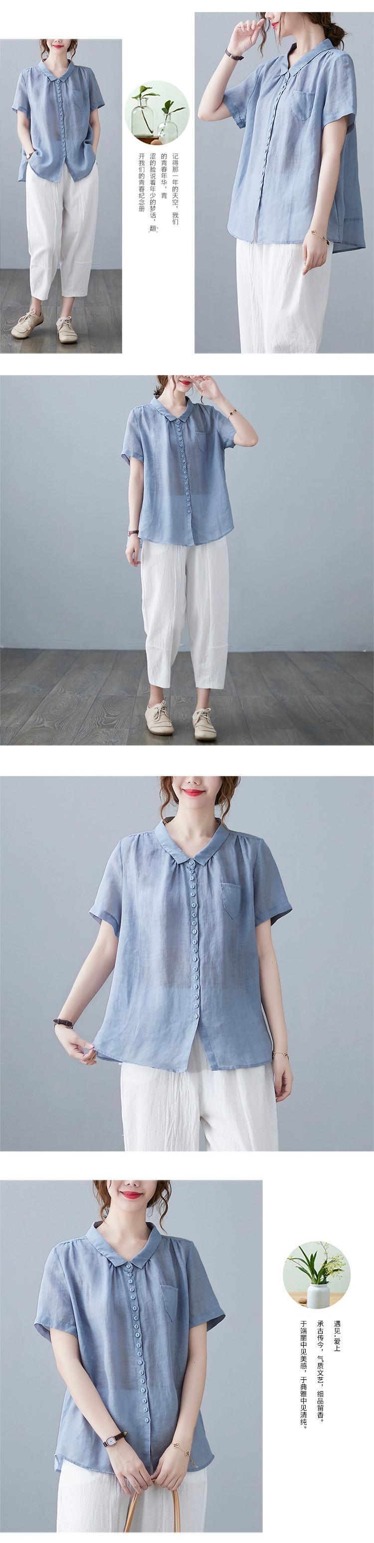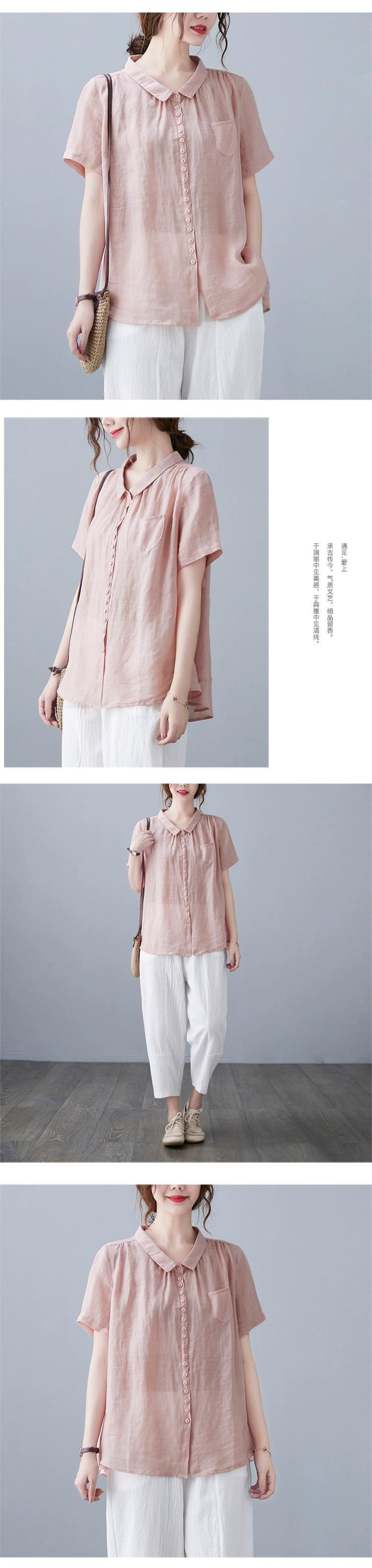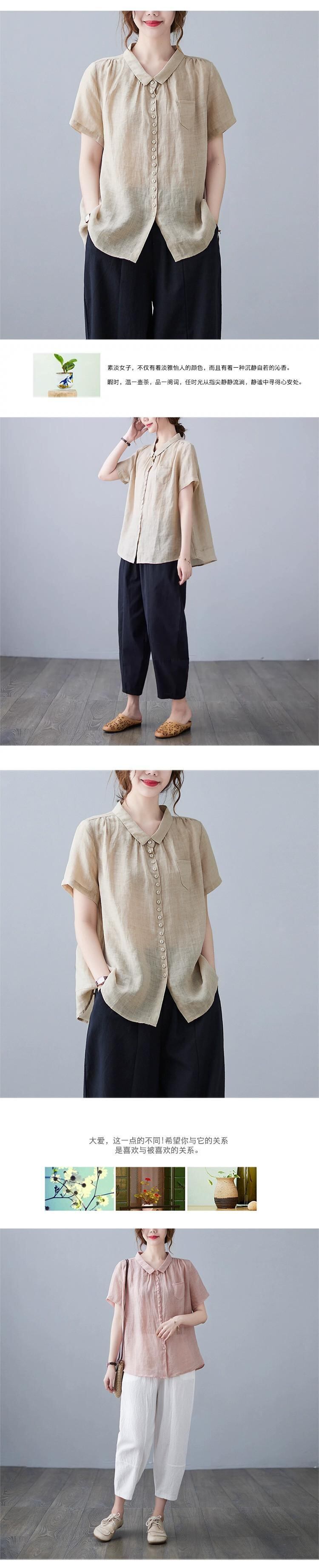 コットンとリネンのシャツ Tシャツ女性 2021 夏ルーズ大きいサイズ脂肪ミリメートル文学無地気質ラペルリネン半袖トップ 大きめサイズ サマー 夏物 ソリッドカラー sine98645812396