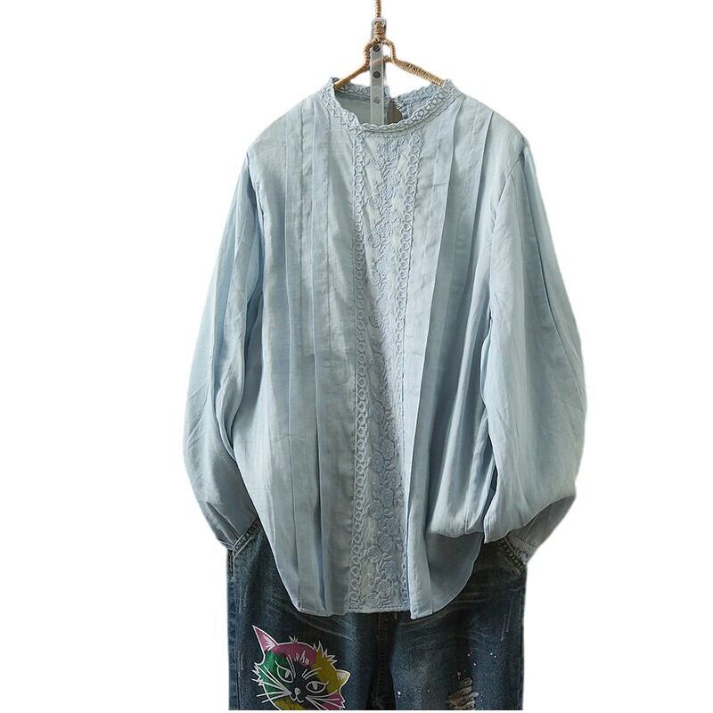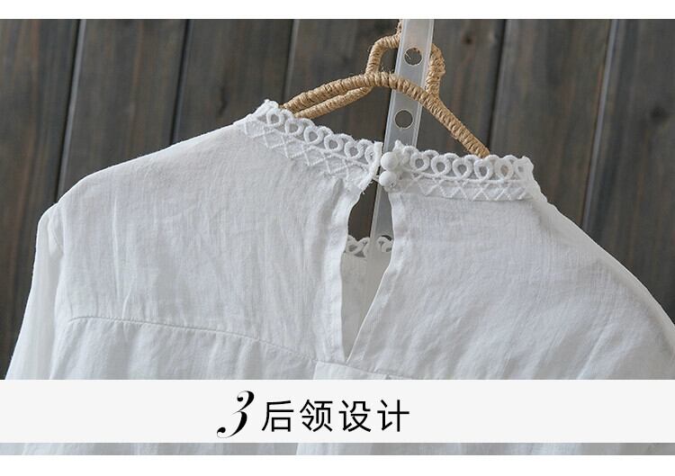 長袖ラミーシャツ女性の春夏の新作ルーズカジュアル気質芸術的なレーススプライシングコットンリネンプルオーバートップ ロング スプリング 春物 サマー 夏物 sine3181607024