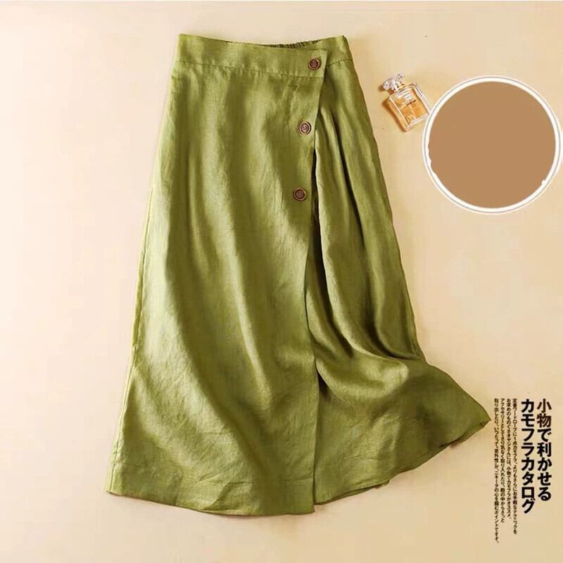 綿とリネンのスカートの女性の夏 2021 新しい緩い大きいサイズハイウエストレトロ無地ミッドレングスリネン a ラインスカートと大きな裾 ハイウェスト コットン 大きめサイズ サマー 夏物 Aライン ソリッドカラー sine80362232237