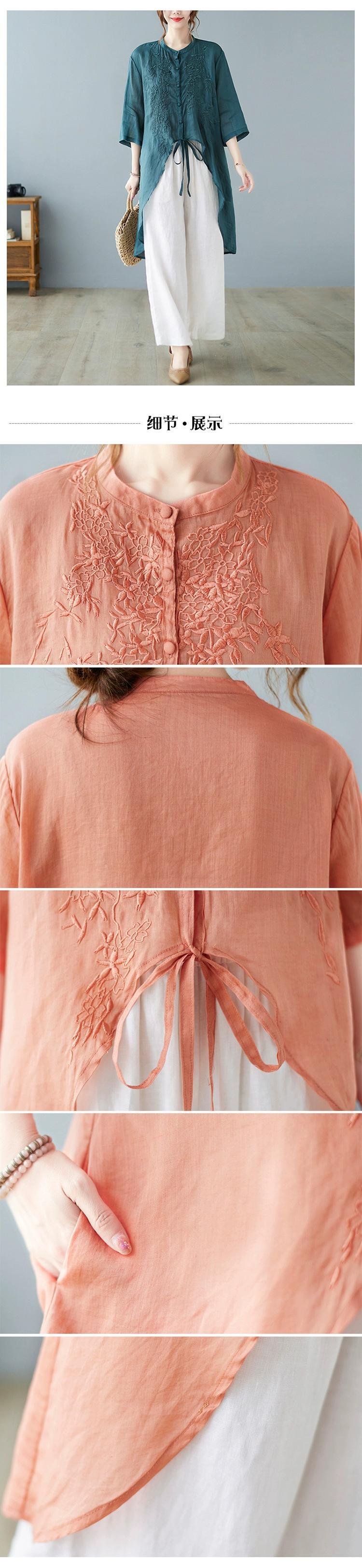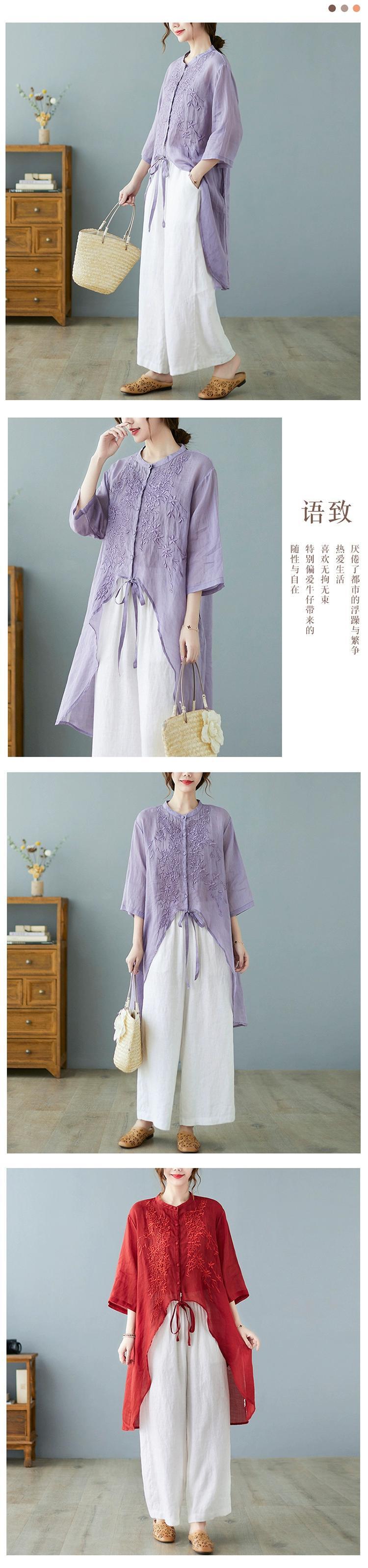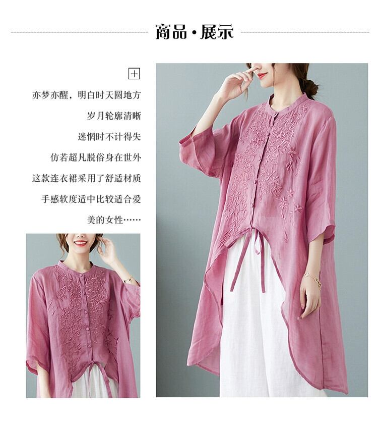 綿とリネンのシャツの女性の夏 2021 新しい緩い大きいサイズの西洋スタイルの刺繍レース不規則なミッドレングスのリネントップス レッド コットン 大きめサイズ サマー 夏物 sine11078108613