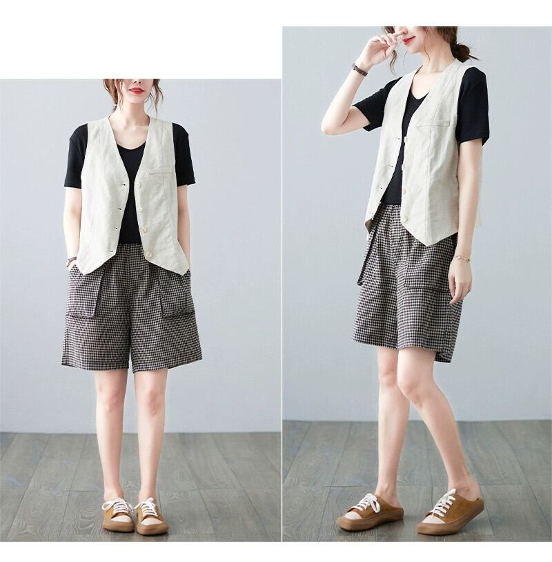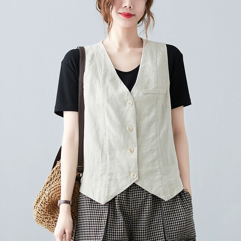 綿とリネンのベストジャケット女性の夏 2021 新しい緩い文学レトロ無地薄いカジュアルリネンベストトップ コットン サマー 夏物 ソリッドカラー sine36964876435