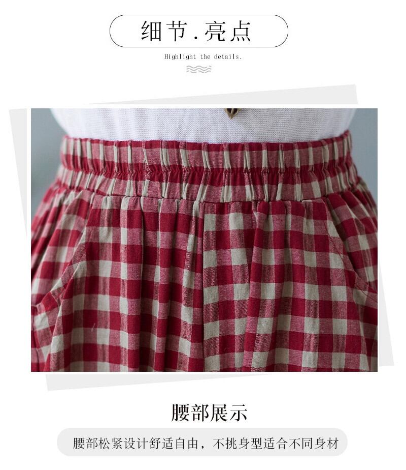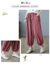綿麻ブルマ レディース 夏 ゆったり 大きいサイズ 太さmm 年齢軽減 チェック柄 ウエストゴム カジュアル リネン 9点ハーレムパンツ コットン エラスティック 伸縮 大きめサイズ サマー 夏物 ショーツ ブルマー sine21715127402