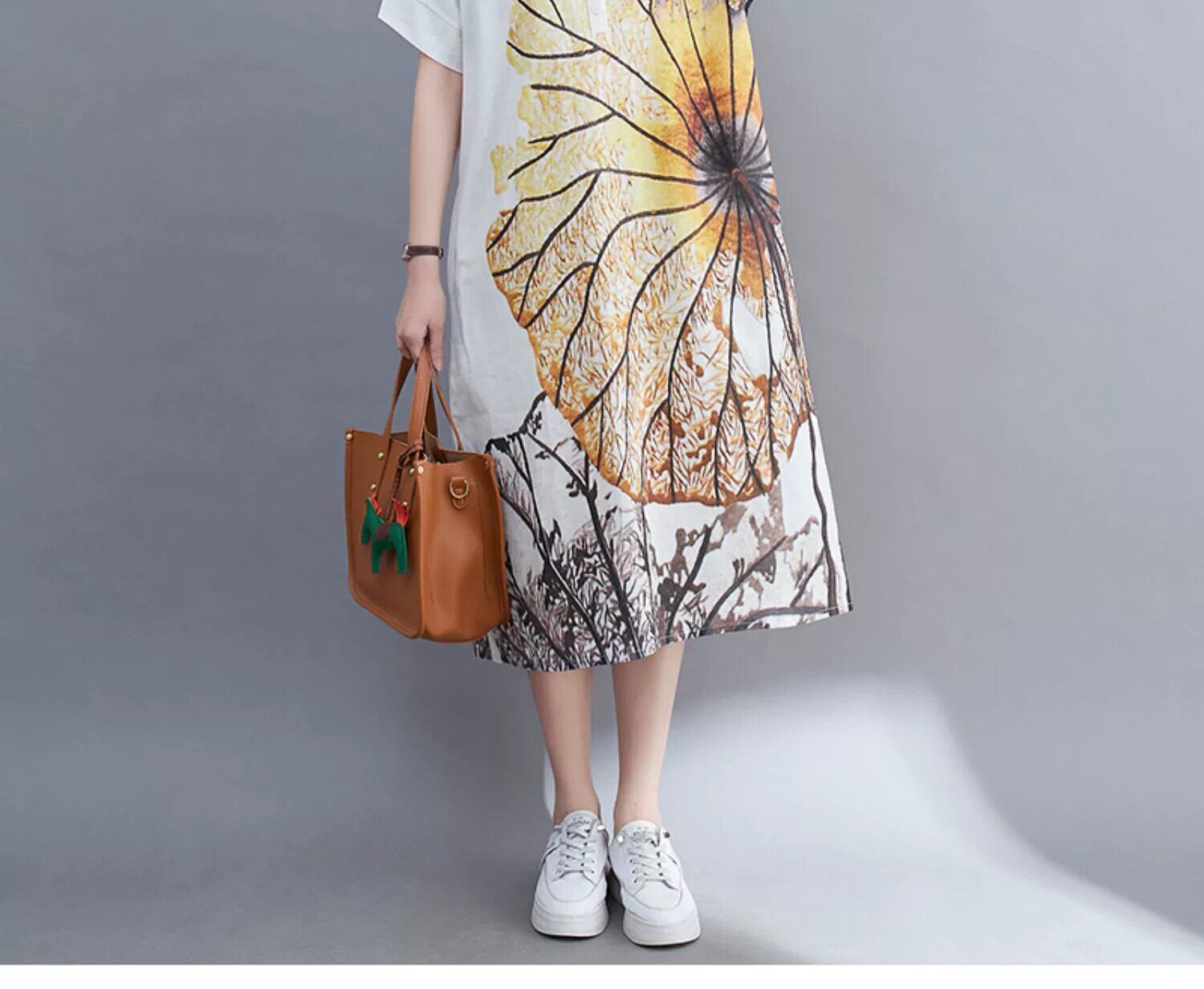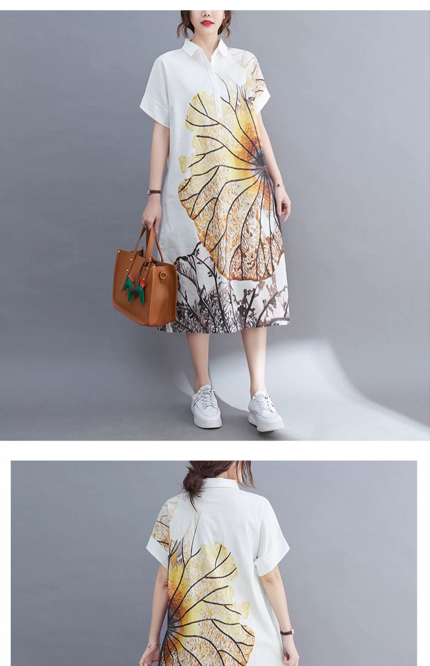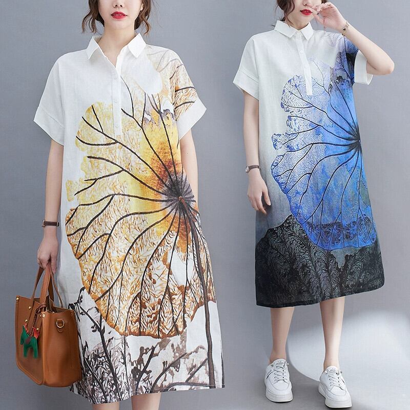 プラスサイズの女性の綿とリネンのドレス夏 2021 新しい緩いファッションパーソナライズされたプリントラペルミッドレングスシャツドレス コットン 大きめサイズ サマー 夏物 sine18066493847