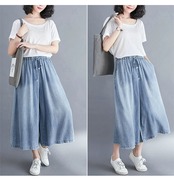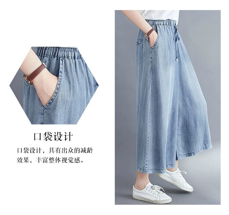 2021 新しい夏のデニムワイドレッグパンツとスカートの女性、ゆったりとした大きいサイズの太い mm ドローストリング、テンセルカジュアルクロップドパンツ 大きめサイズ サマー 夏物 指輪 sine41581050100