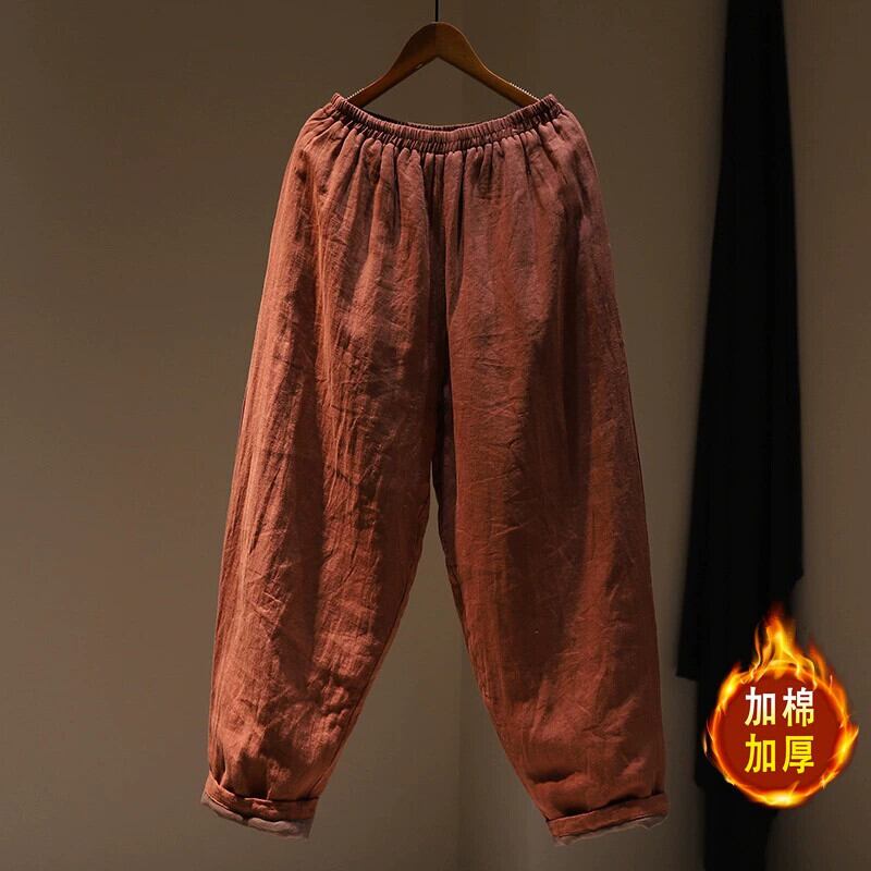 eign trade 割引ブランドテールグッズレトロリネンキルティングハーレムパンツ女性の弾性ウエストカジュアル肥厚綿とリネンブルマ コットン エラスティック 伸縮 ショーツ ブルマー sine30301795