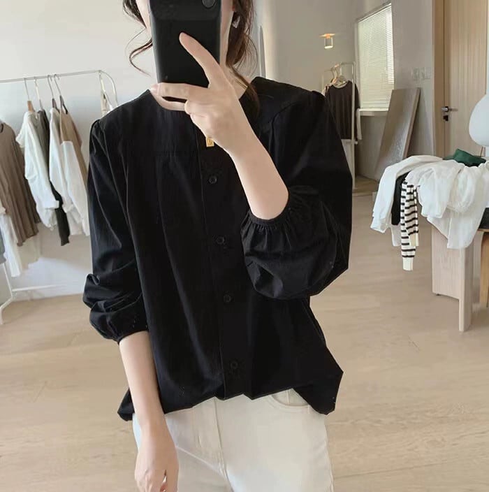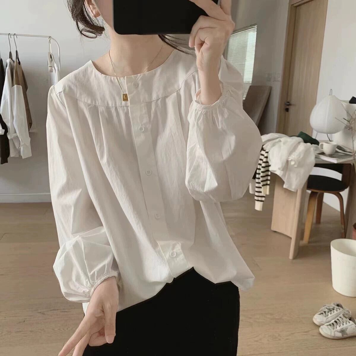 春と秋のレトロなパフスリーブシャツの女性、ルーズ、スリム、ニッチなデザイン、ラウンドネックシャツトップ スプリング 春物 オータム 秋物 sine18834674071