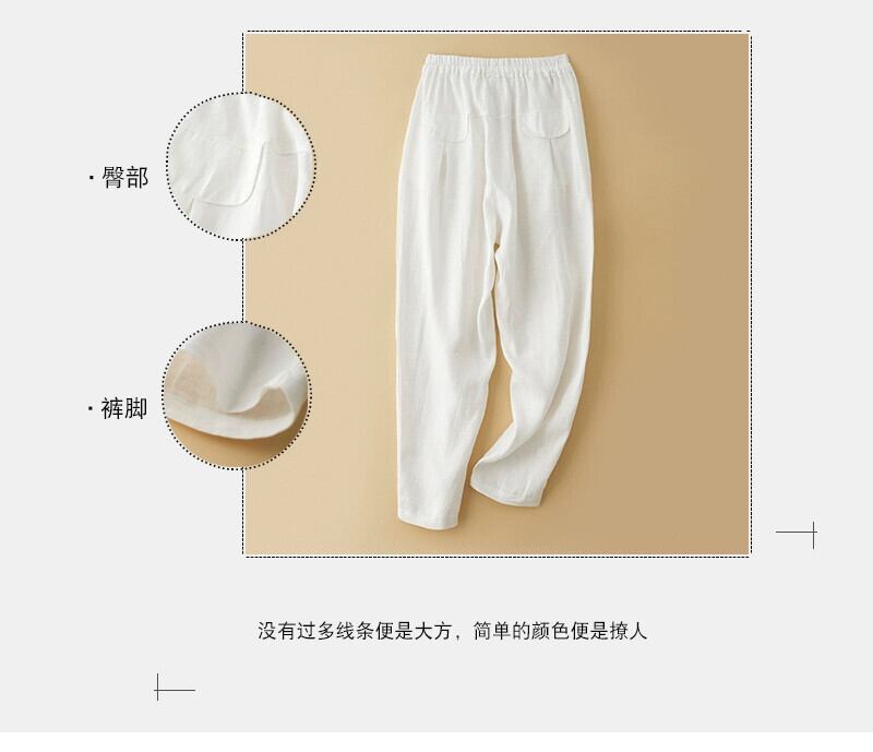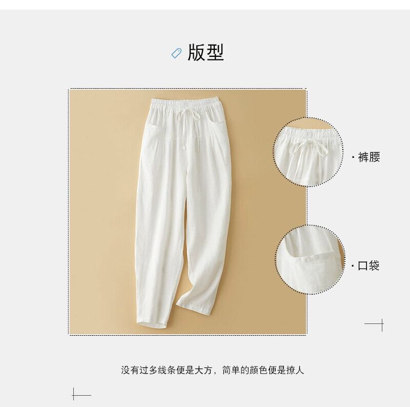 コットンとリネンのハーレムパンツ女性の夏の新しいスタイルルーズ大きいサイズ弾性ウエストネクタイソリッドカラースタイルカジュアル9点キャロットパンツ エラスティック 伸縮 大きめサイズ サマー 夏物 sine15627479639