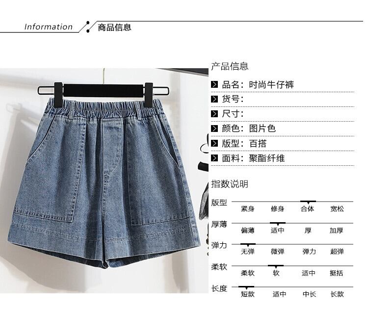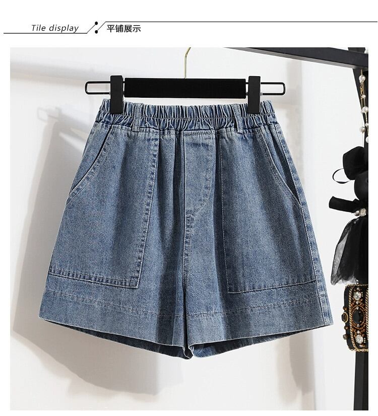200 ジンファットシスターデニムショートパンツ女性の緩い夏バージョンウエスト大きいサイズの女性の弾性 A ラインワイドレッグホットパンツ エラスティック 伸縮 大きめサイズ サマー 夏物 ショーツ ブルマー Aライン ワイドパンツ sine94378366685