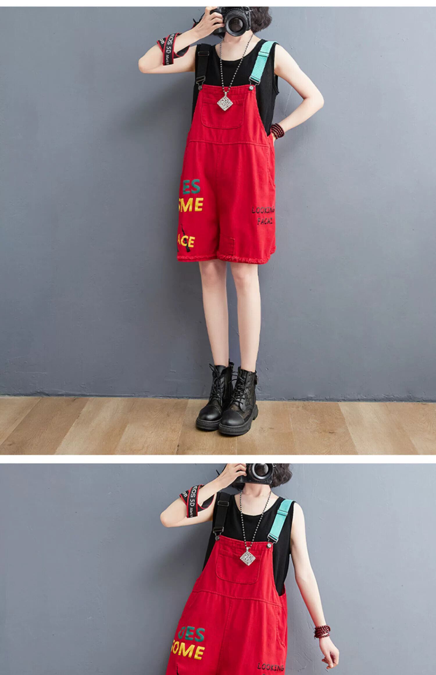 スタイルデニムサスペンダーショーツレディース夏服2021ルーズ大きいサイズファットmmレターワンピースカジュアル5点式ワイドレッグパンツ 大きめサイズ サマー 夏物 ブルマー sine76778689213