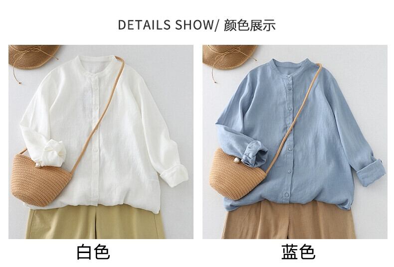 ese 森 レディース リネン 長袖シャツ レディース 春秋 通勤 多用途 ゆったり 文学 スタイル コットンとリネン ボトリング シャツ トップス ロング スプリング 春物 オータム 秋物 sine31677032624