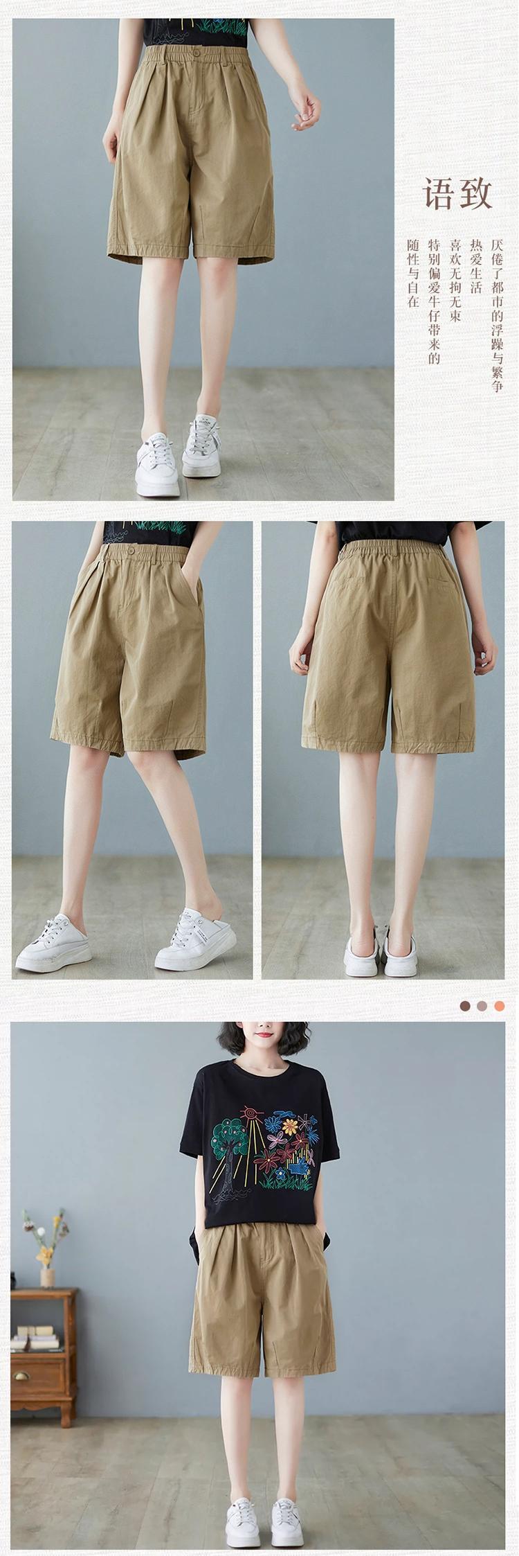 パンツレディース、夏服、レトロツイルコットン、ウエストゴム、ゆったり、大きいサイズ、スリム、万能、ストレートレッグ、ミドル丈パンツ エラスティック 伸縮 大きめサイズ サマー 夏物 sine10315393419