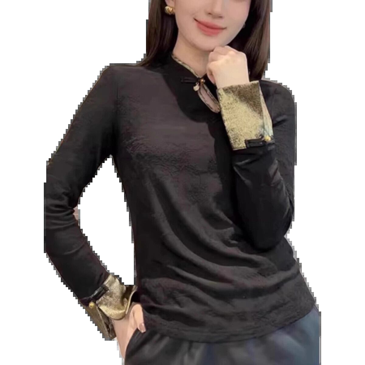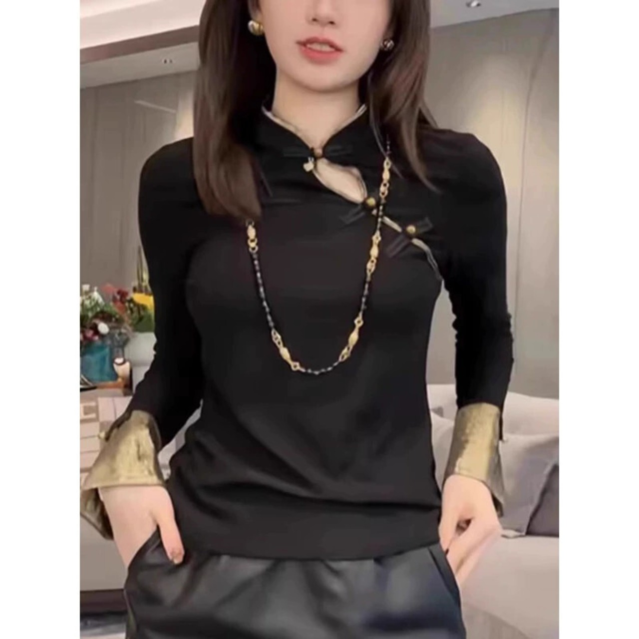 中国風の斜めボタンアップシャツの女性、春と秋のヨーロッパスタイル、ハイエンドの気質、レトロな国民風の改良されたチャイナドレストップ スプリング 春物 オータム 秋物 ヨーロピアン sine35332315367